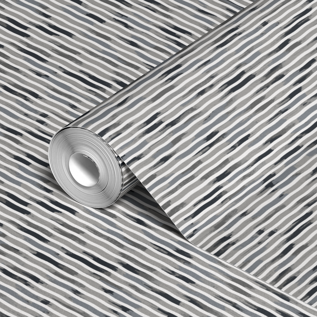 Contemporary black and white stripes with textural brushstroke effects create a modern abstract pattern with organic flowing lines and varying intensity.