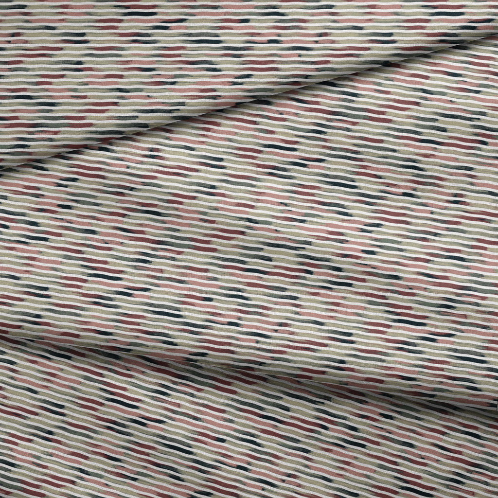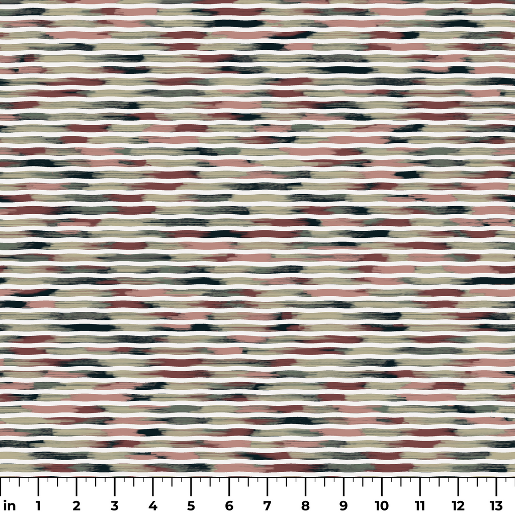 Sophisticated horizontal stripes in muted burgundy, navy, and beige create a serene, contemporary pattern perfect for home décor. The textured, watercolor-effect design adds subtle depth and visual interest.
