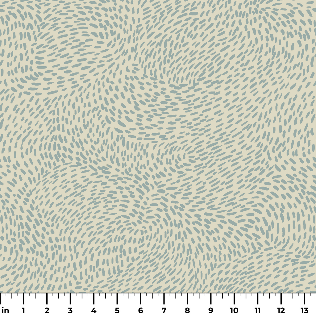 Elegant beige and blue organic pattern featuring flowing motifs that create a sophisticated swirled texture
