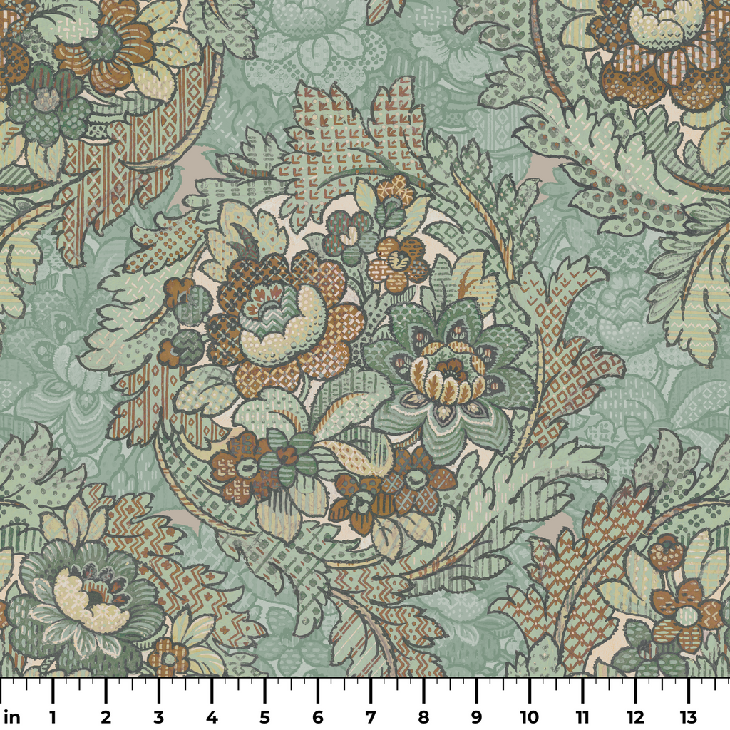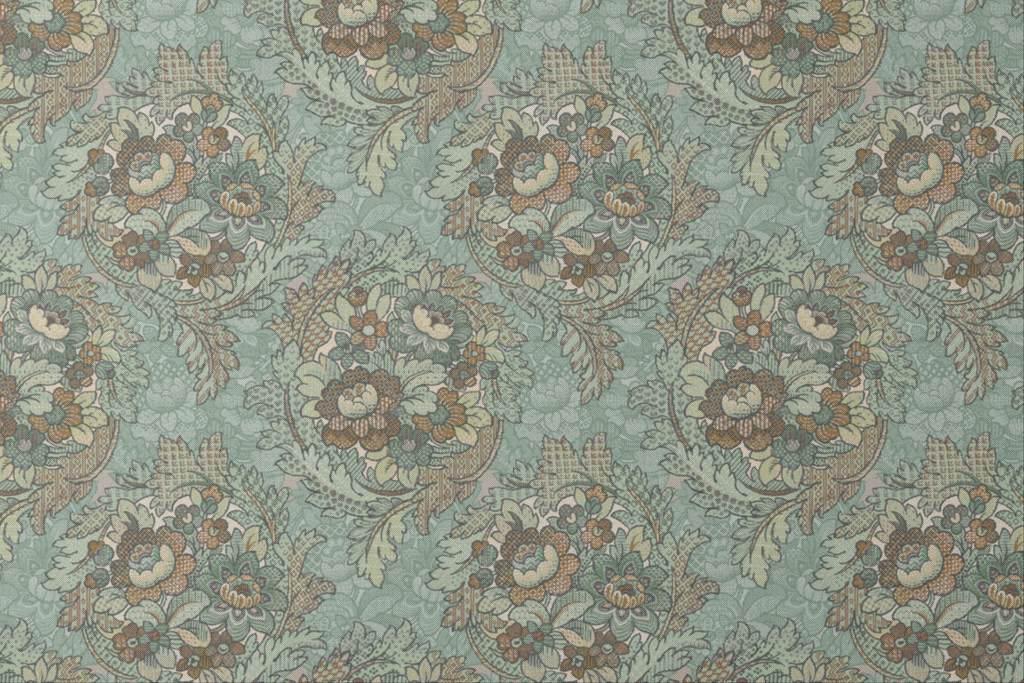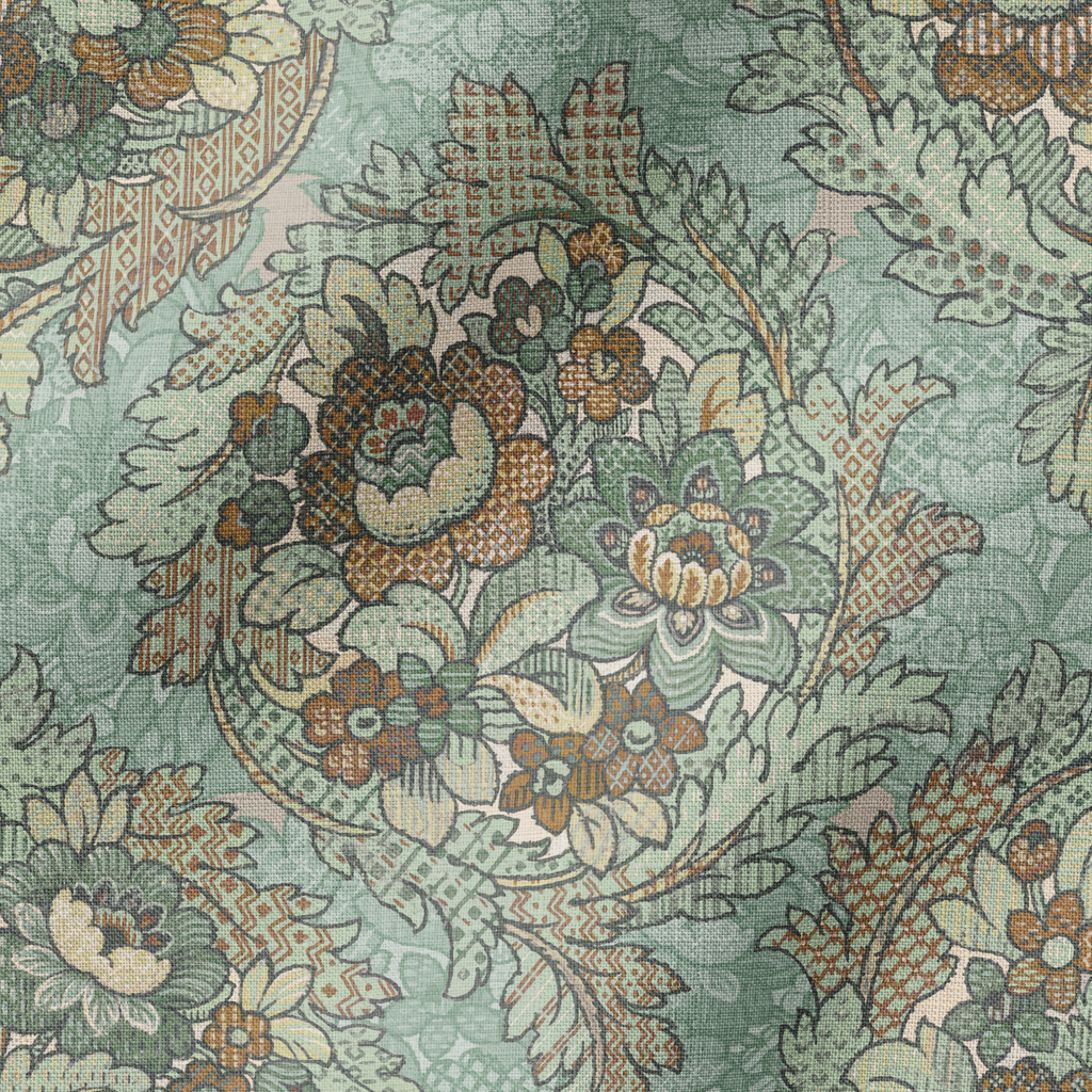 Elegant vintage floral damask pattern in soft sage green and muted browns, featuring ornate medallions and botanical motifs perfect for a classic feel to any space.