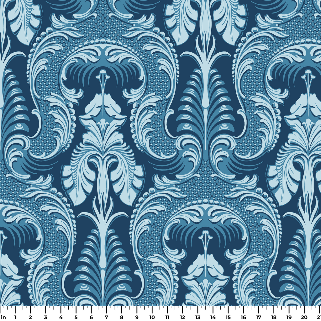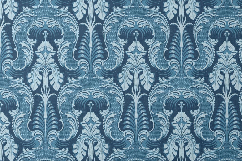 Elegant Art Nouveau pattern with swirling organic forms in a sophisticated palette of blue tones. Perfect for heritage-inspired home decor with its flowing lines and intricate detailing.