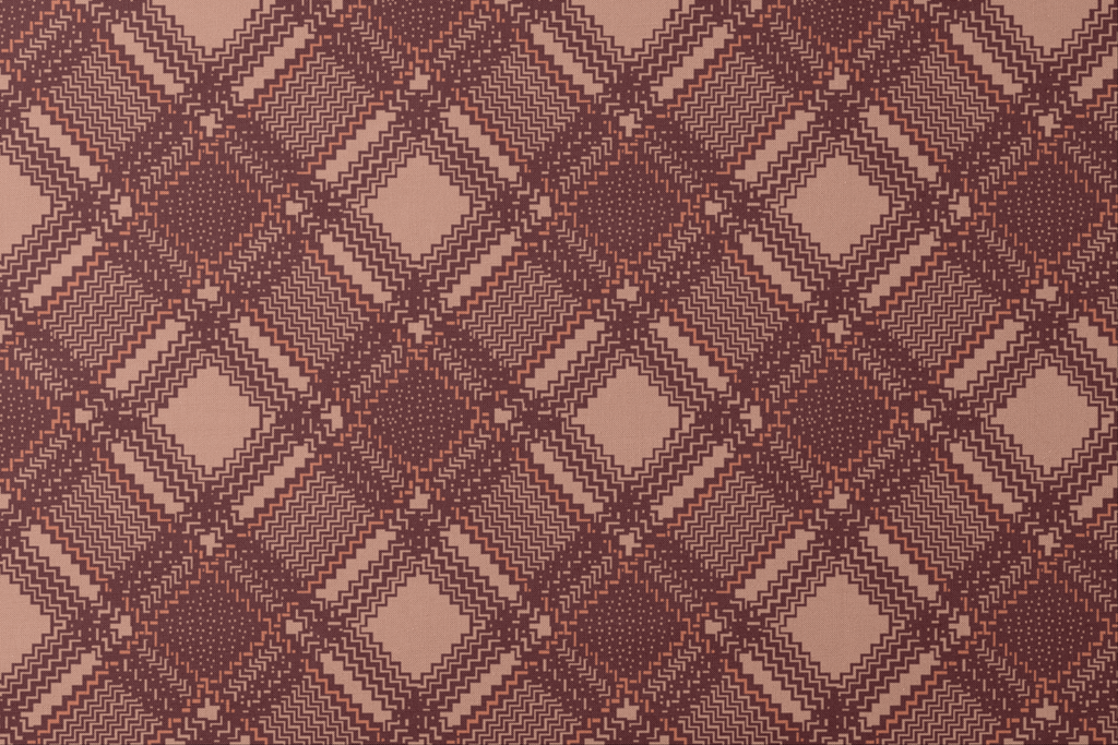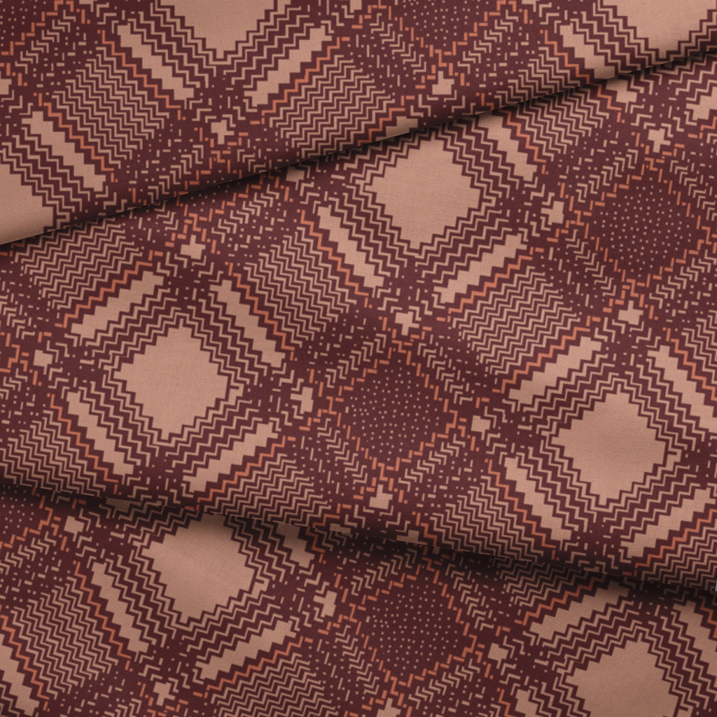 This stylish geometric pattern features a classic tartan-inspired design with zigzag textures in deep burgandy or maroon colors against a soft background, creating a timeless plaid motif.