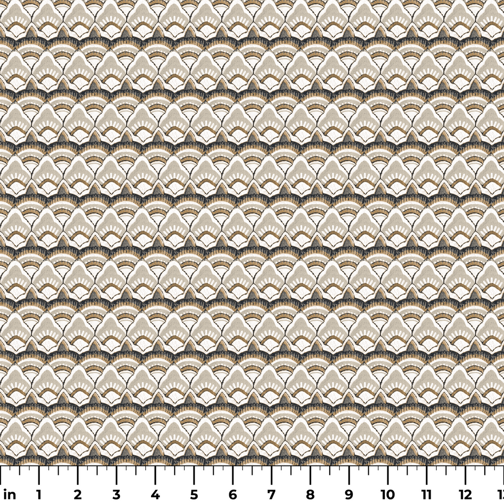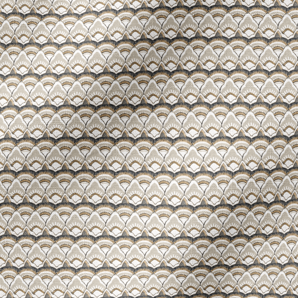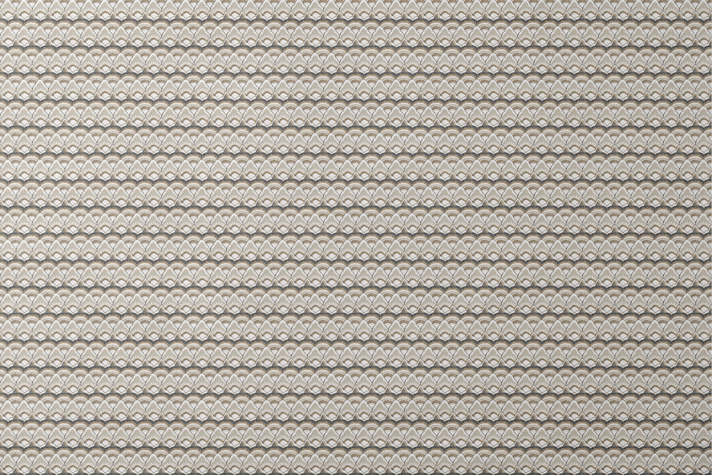 Elegant Art Deco-inspired pattern with overlapping oval motifs in neutral cream, beige, and brown tones. Perfect for a sophisticated vibe for your home with its timeless geometric design and vintage appeal.