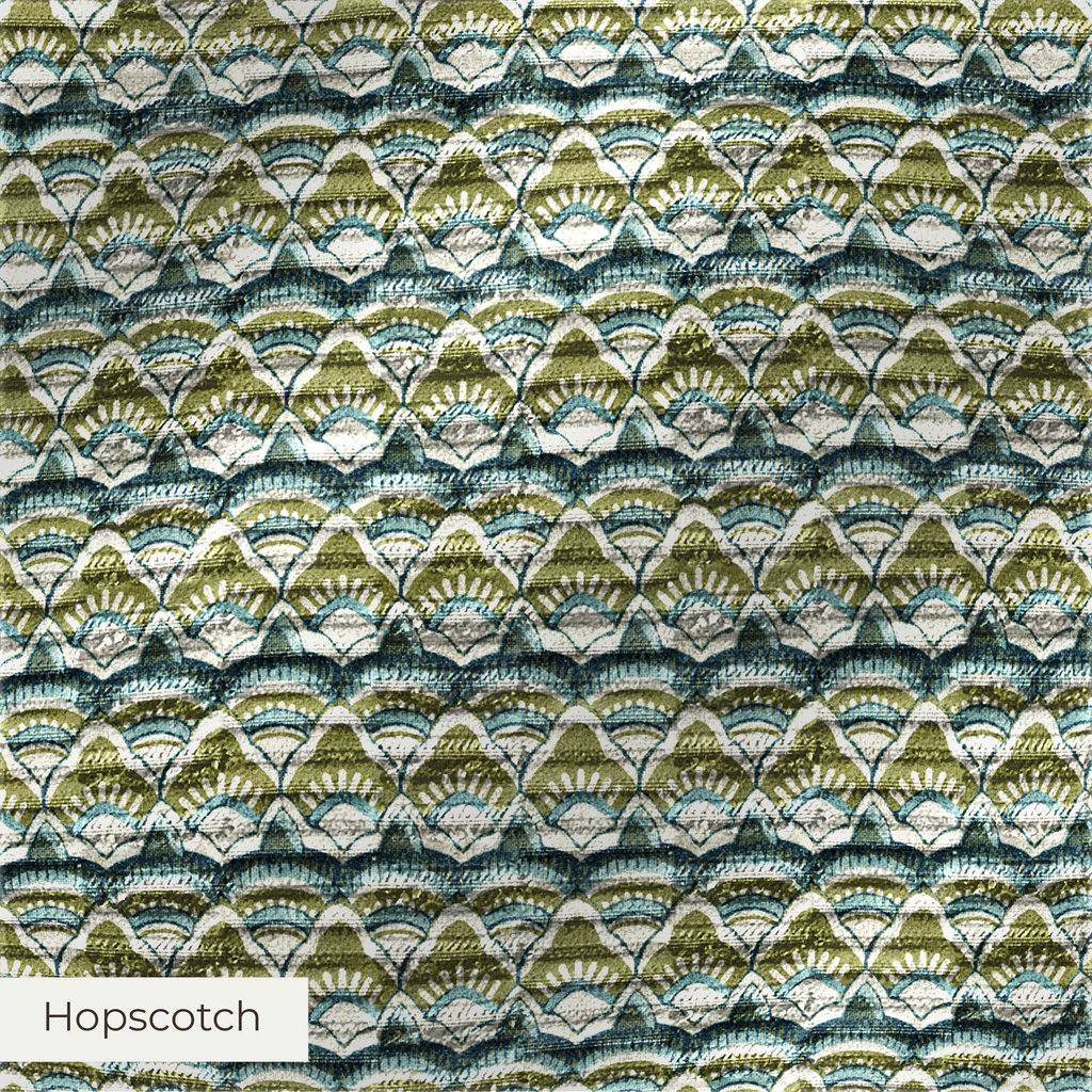 A bold, playful upholstery fabric with raised rectangular accents and subtle sheen. Hopscotch offers a modern architectural feel. Its tactile surface, durability, and design selection make it ideal for statement home decor pieces.