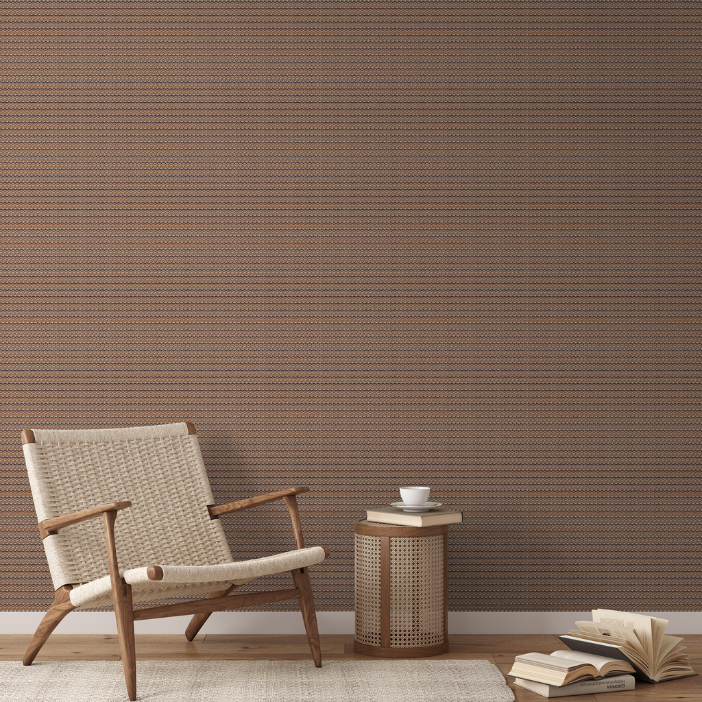Elegant Art Deco-inspired pattern with overlapping oval motifs in brown and burgundy tones. Perfect for a sophisticated vibe for your home with its timeless geometric design and vintage appeal.