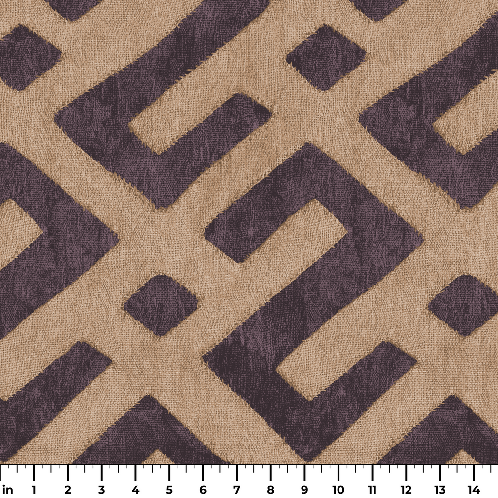 Sophisticated geometric pattern in rich brown on a beige background featuring bold, angular lines and diamond shapes. Perfect for contemporary home decor with a tribal-inspired aesthetic.