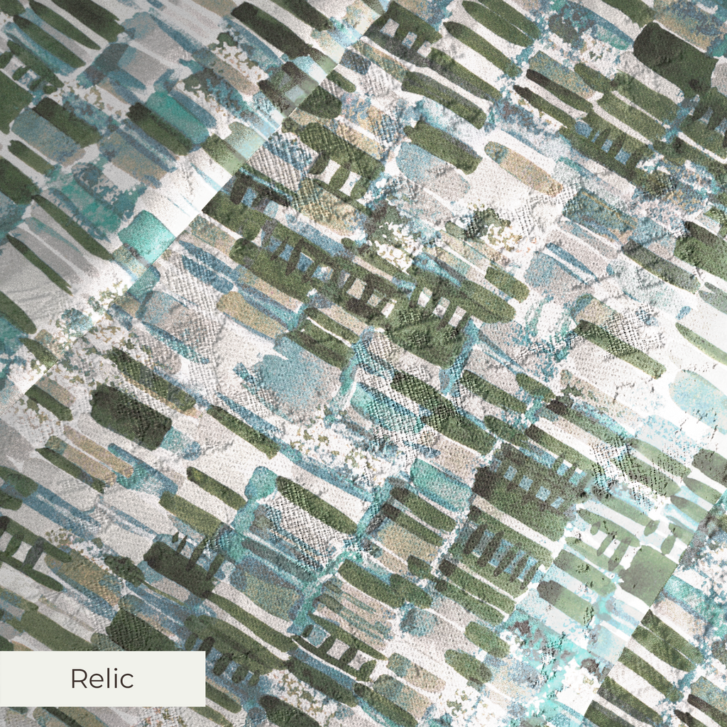 A luxurious jacquard upholstery fabric with an abstract distressed pattern in soft, elegant tones and subtle sheen. Relic brings timeless sophistication and versatile styling across traditional and contemporary interiors.