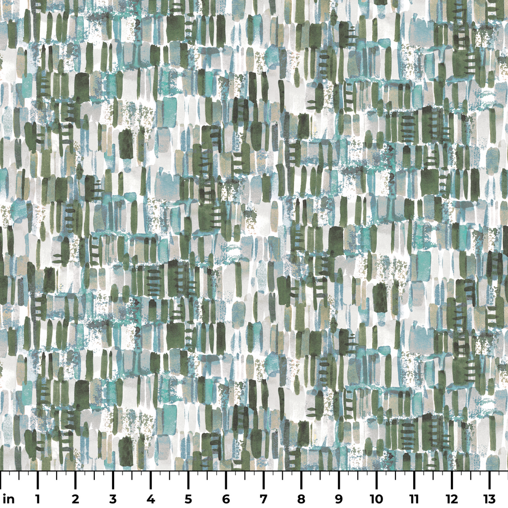 Abstract brushstrokes in teal, mint, and sage green create a textured, contemporary pattern with organic forms and vertical elements. Perfect for modern home decor or statement upholstery.
