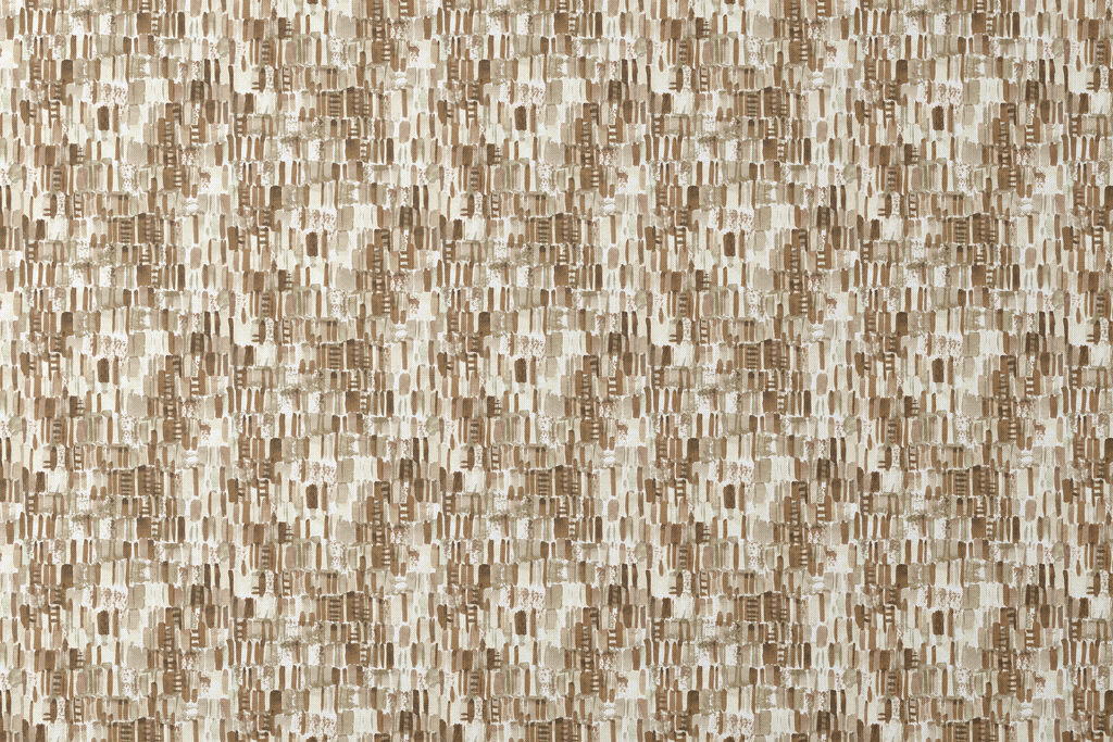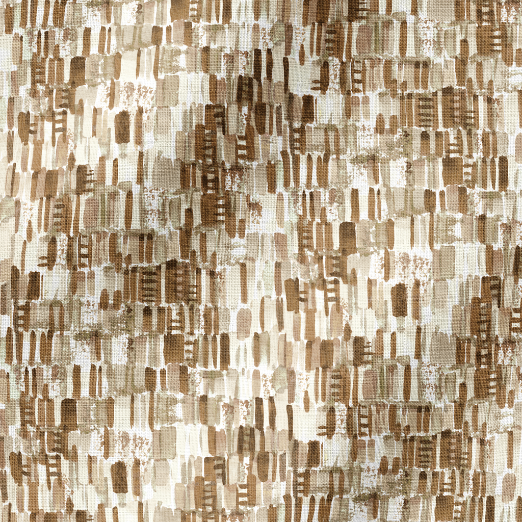 A contemporary abstract pattern in warm earthy tones featuring brushstroke-like rectangles and geometric elements arranged in a textured, mosaic-inspired layout.