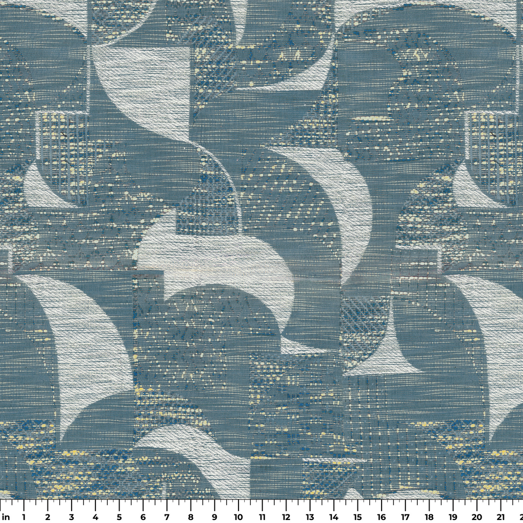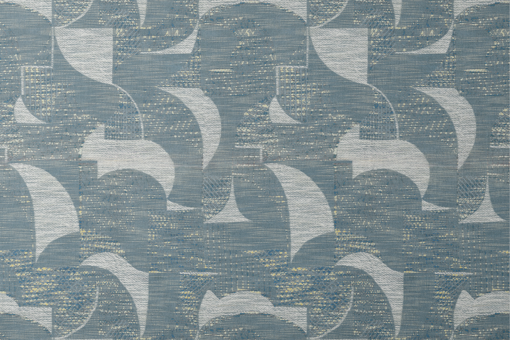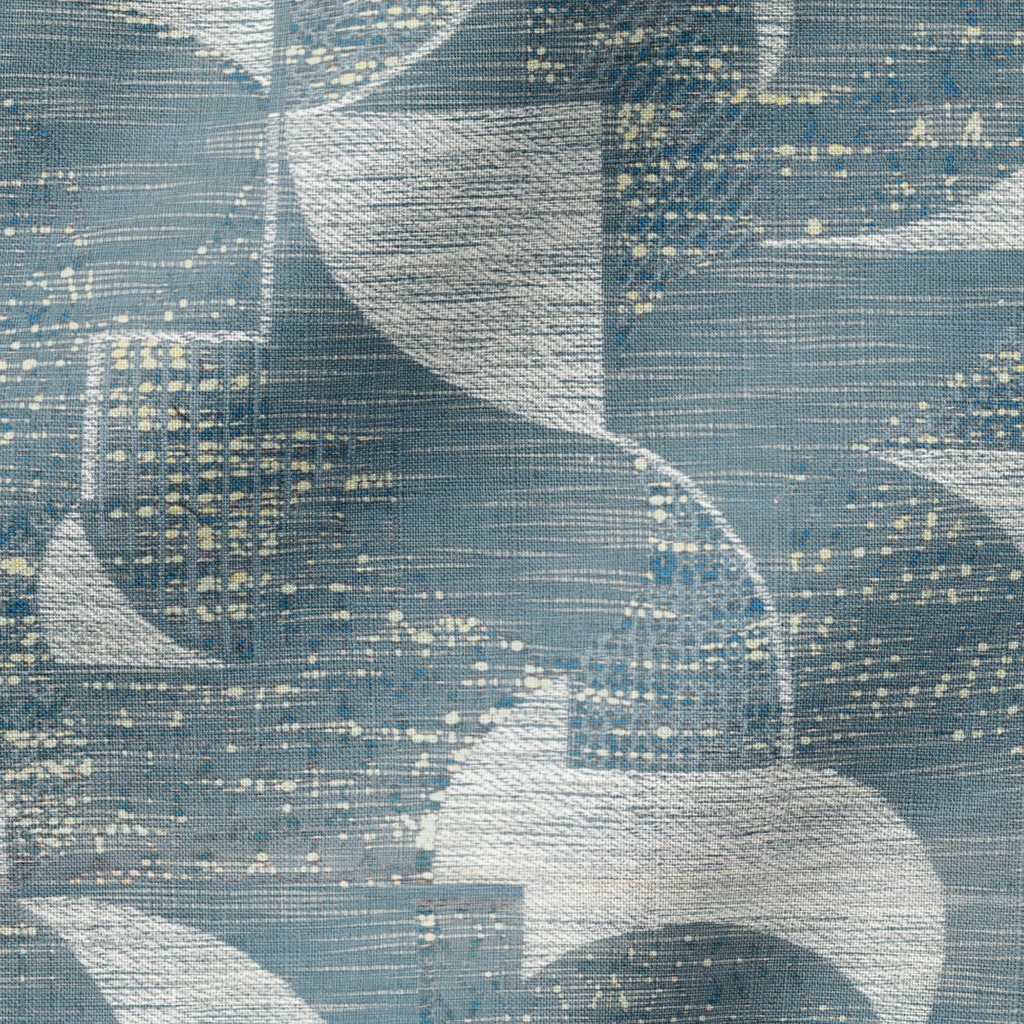 This contemporary blue geometric pattern features elegant curved shapes with a subtle textured background, perfect for adding sophisticated modern style to any space.