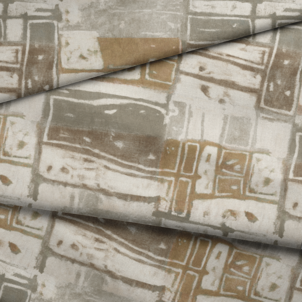 Sophisticated contemporary abstract tile design with geometric rectangles and squares in muted earth tones of beige, brown, and taupe, creating a modern minimalist aesthetic.