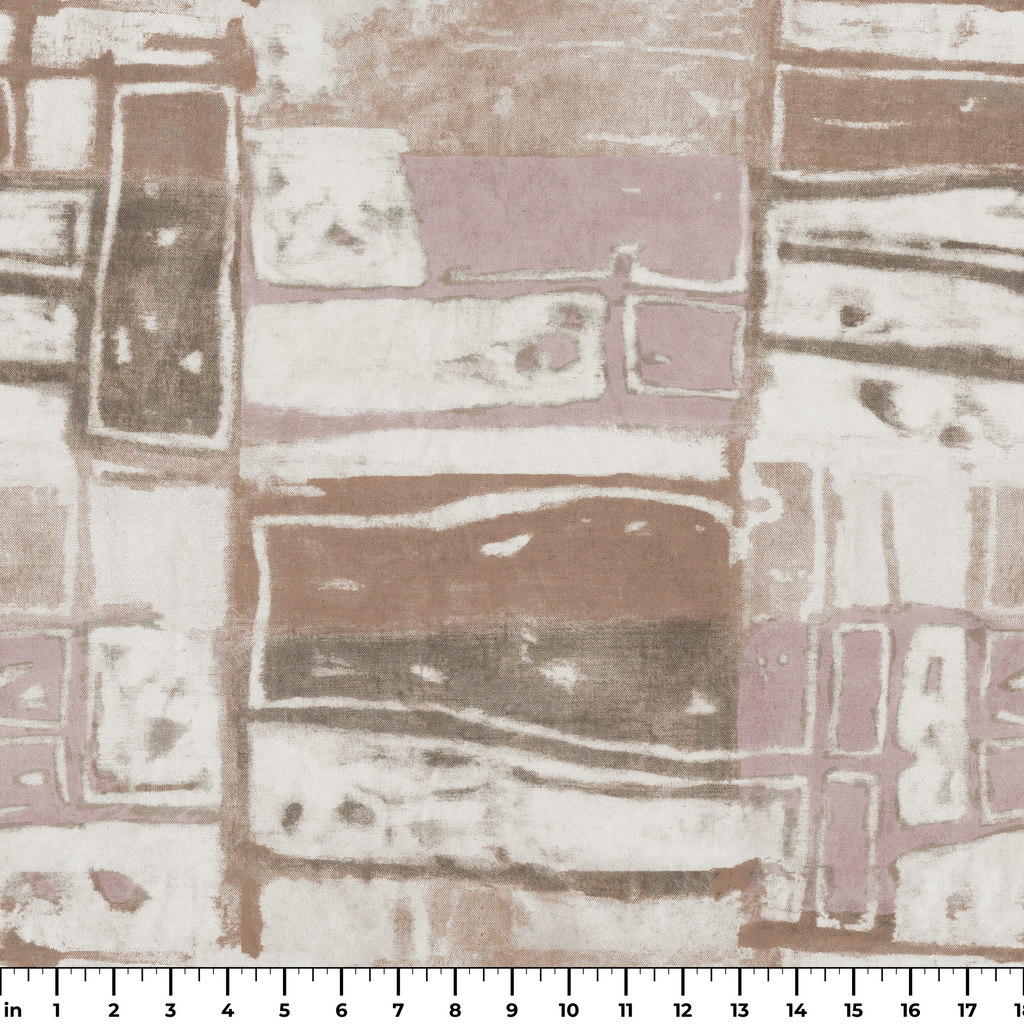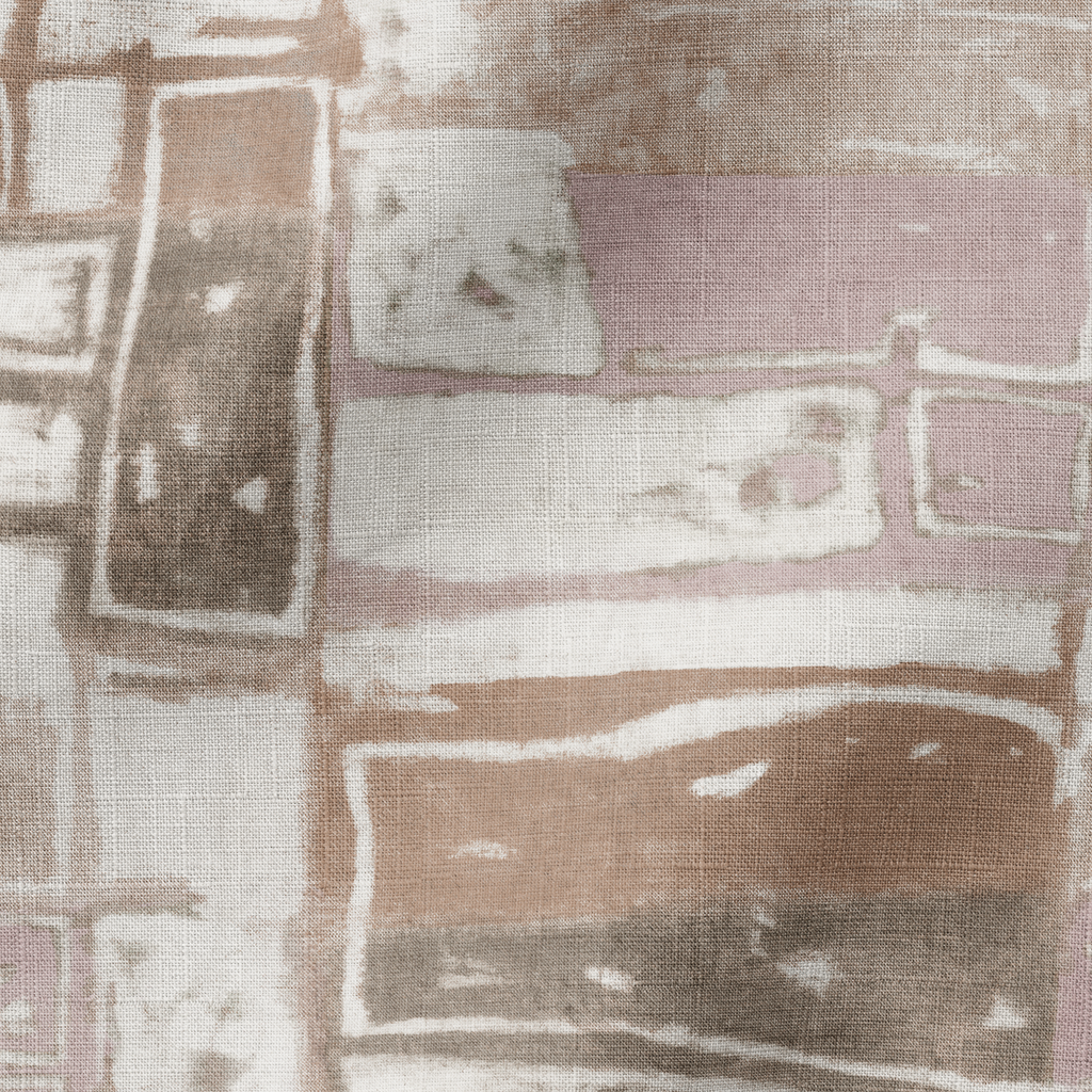 Sophisticated contemporary abstract tile design with geometric rectangles and squares in muted earth tones of beige, brown, and pink, creating a modern minimalist aesthetic.
