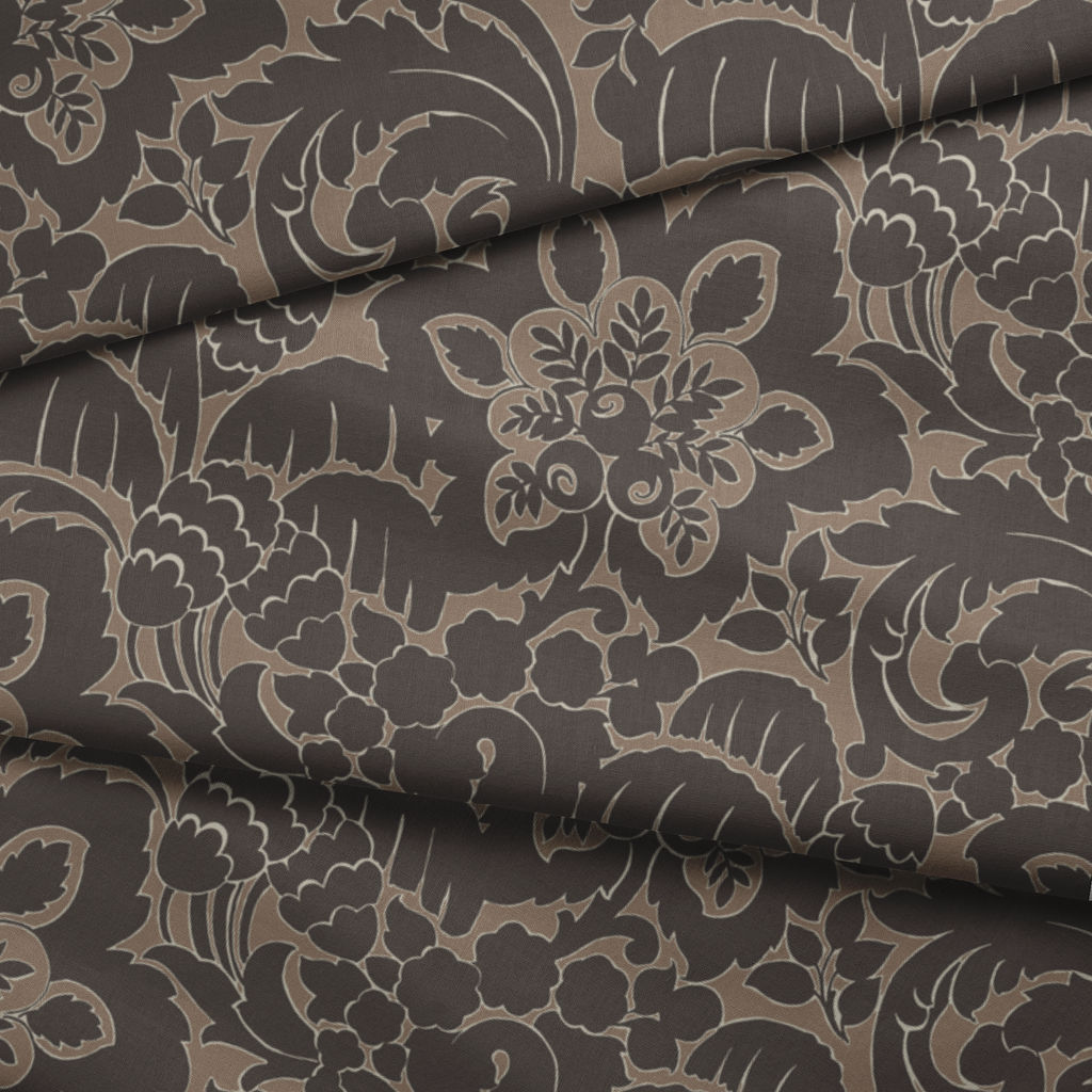 Elegant vintage botanical pattern featuring large stylized leaves and floral motifs in a sophisticated earthy brown color palette. Perfect for modern and traditional aesthetics.