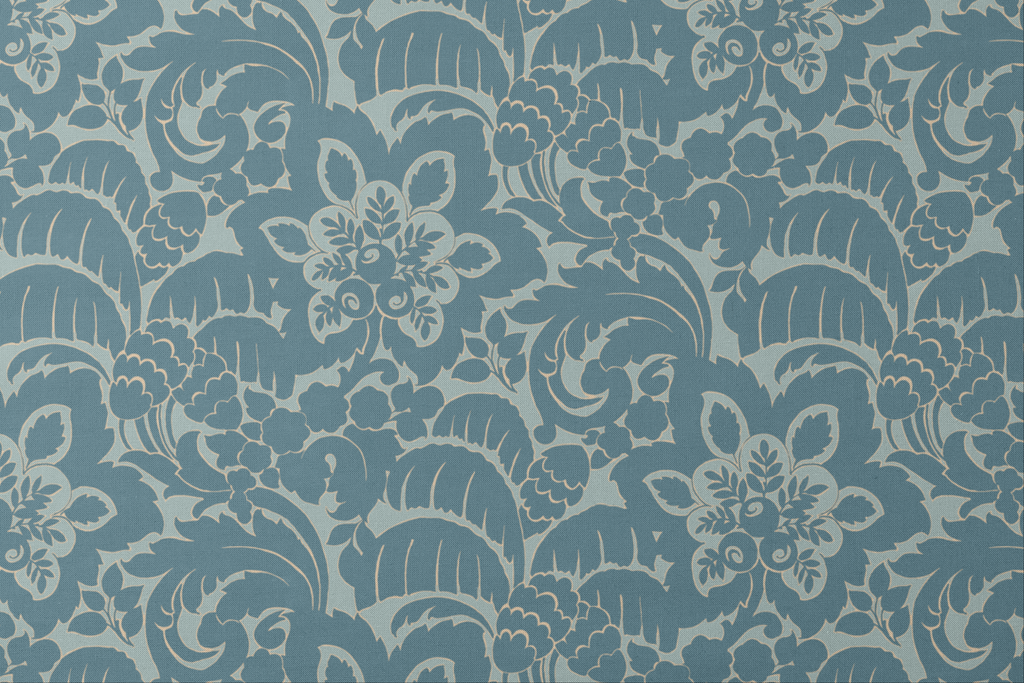 Elegant vintage botanical pattern featuring large stylized leaves and floral motifs in a sophisticated powdery and grey-blue color palette. Perfect for modern and traditional aesthetics.