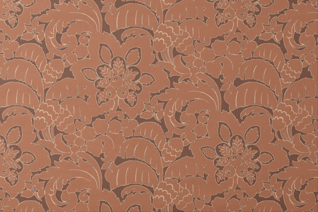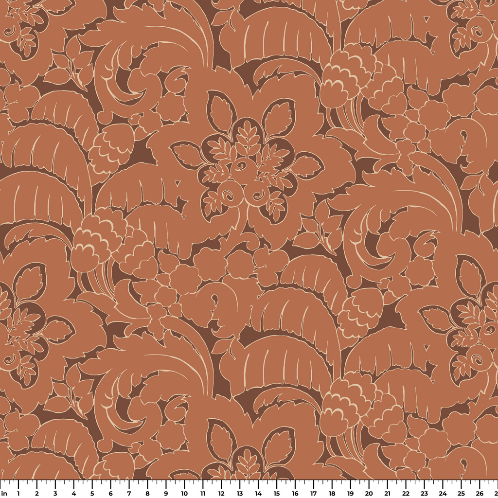 Elegant vintage botanical pattern featuring large stylized leaves and floral motifs in a sophisticated burnt orange color palette. Perfect for modern and traditional aesthetics.