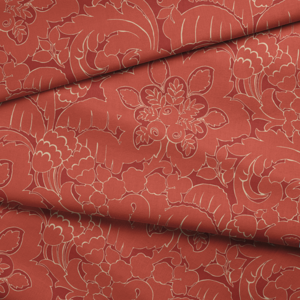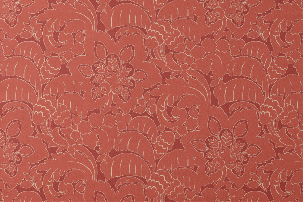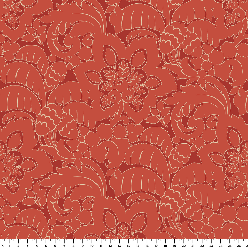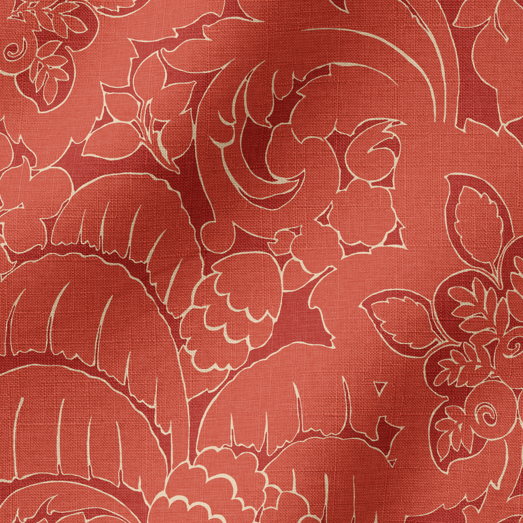 Elegant vintage botanical pattern featuring large stylized leaves and floral motifs in a bold yet sophisticated red-orange color palette. Perfect for modern and traditional aesthetics.