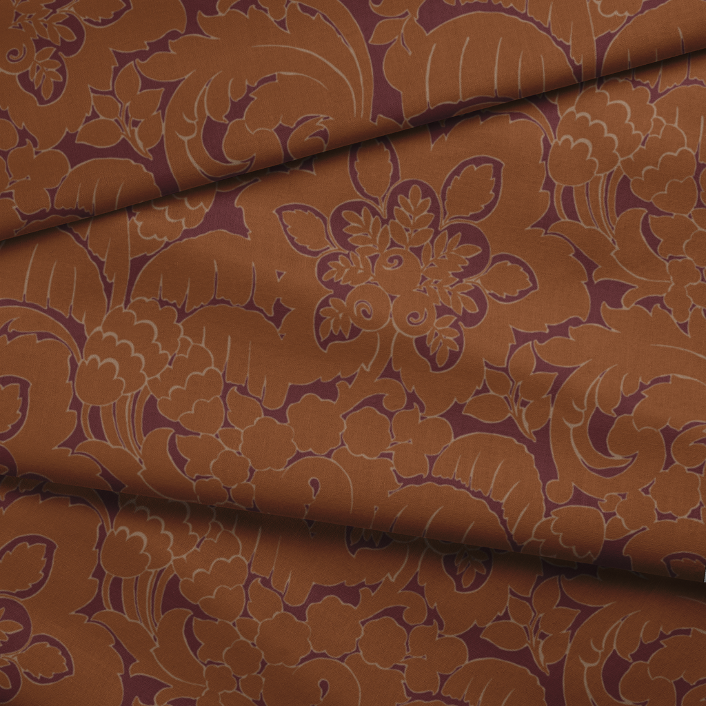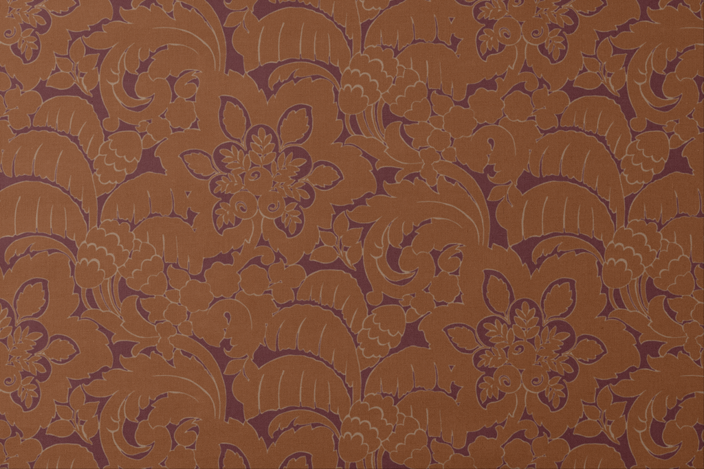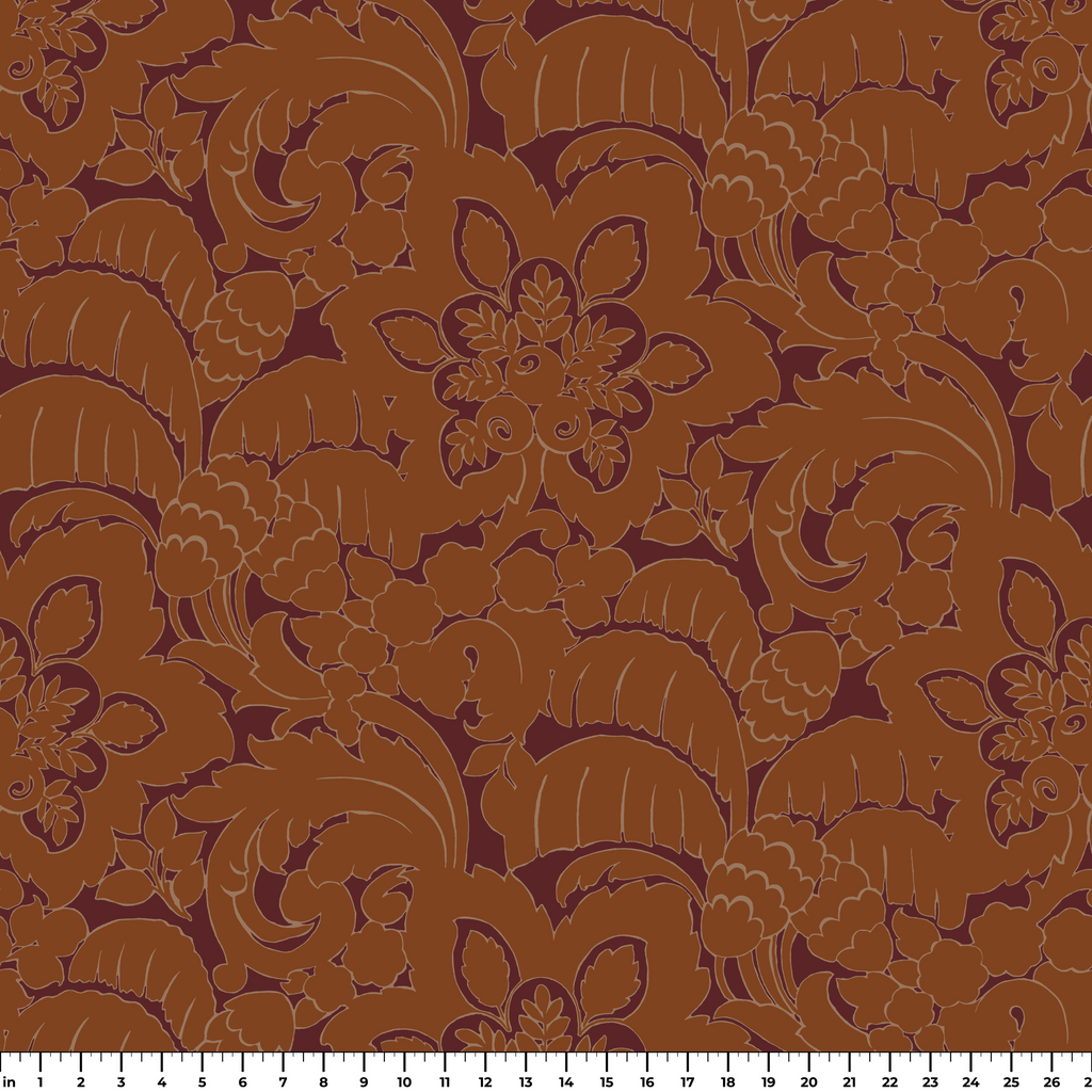 Elegant vintage botanical pattern featuring large stylized leaves and floral motifs in a sophisticated burnt orange and deep red color palette. Perfect for modern and traditional aesthetics.