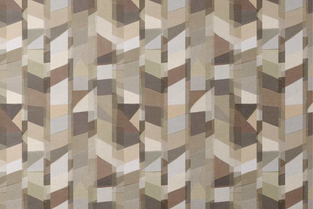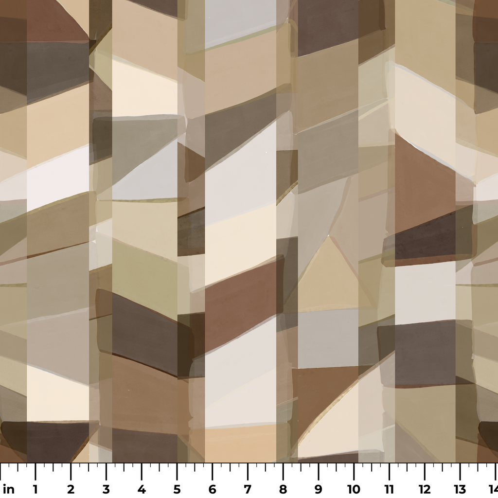 Contemporary geometric pattern in neutral earth tones featuring abstract angular shapes. Modern cubist-inspired design with beige, tan, and brown blocks creates a sophisticated architectural motif.