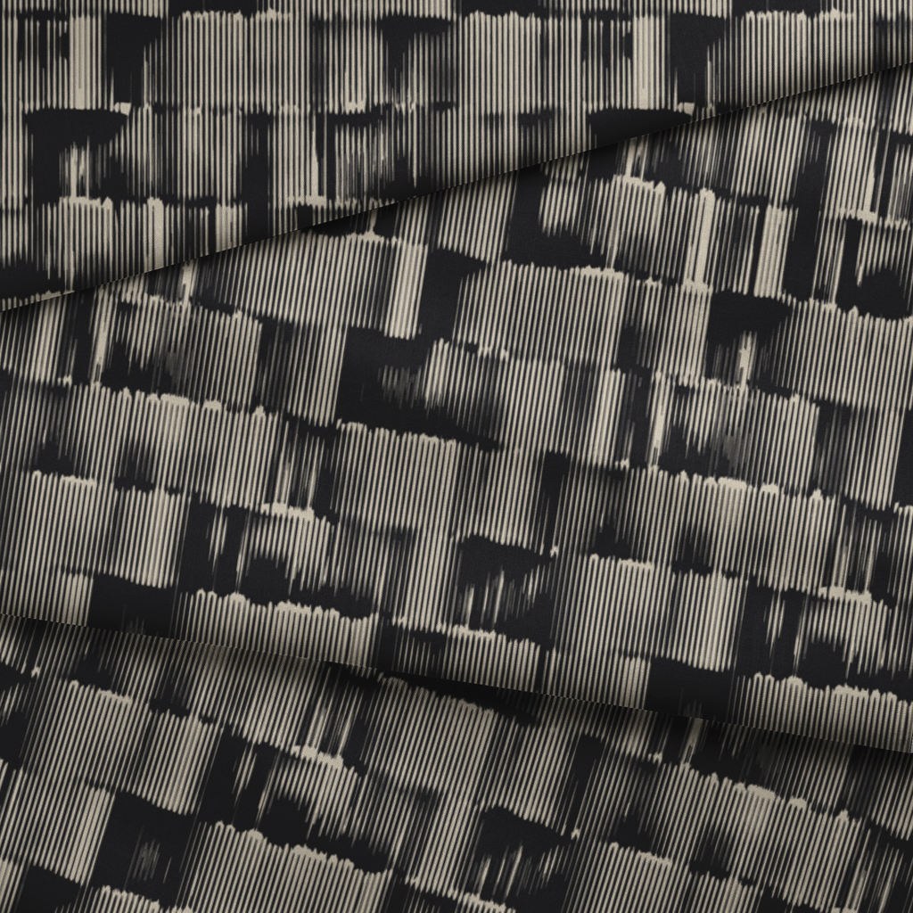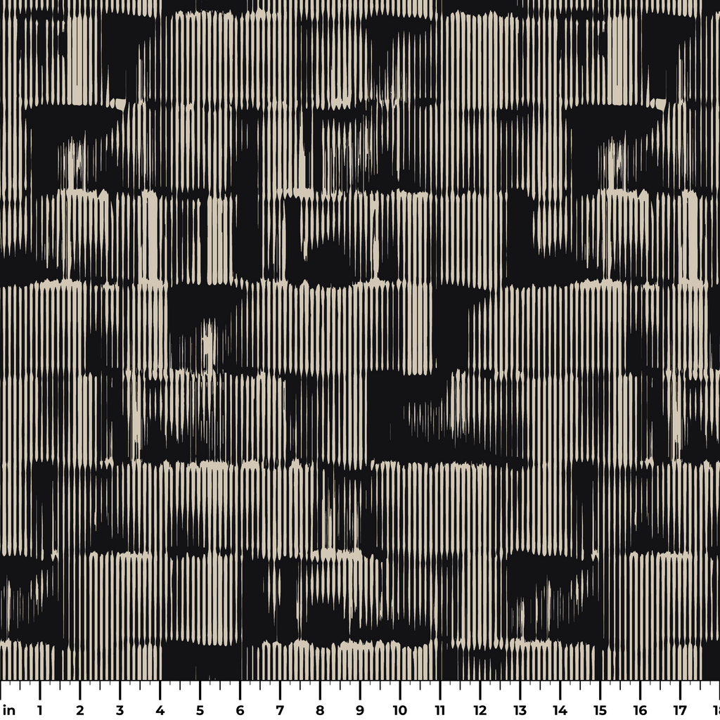 Modern geometric pattern with sleek vertical lines in black, white, and gray tones, creating a contemporary abstract design with a striking industrial aesthetic.
