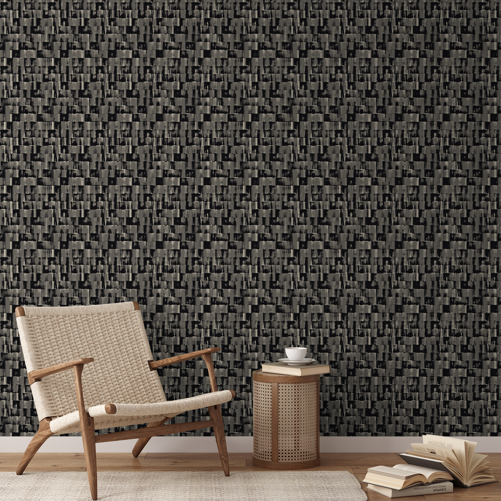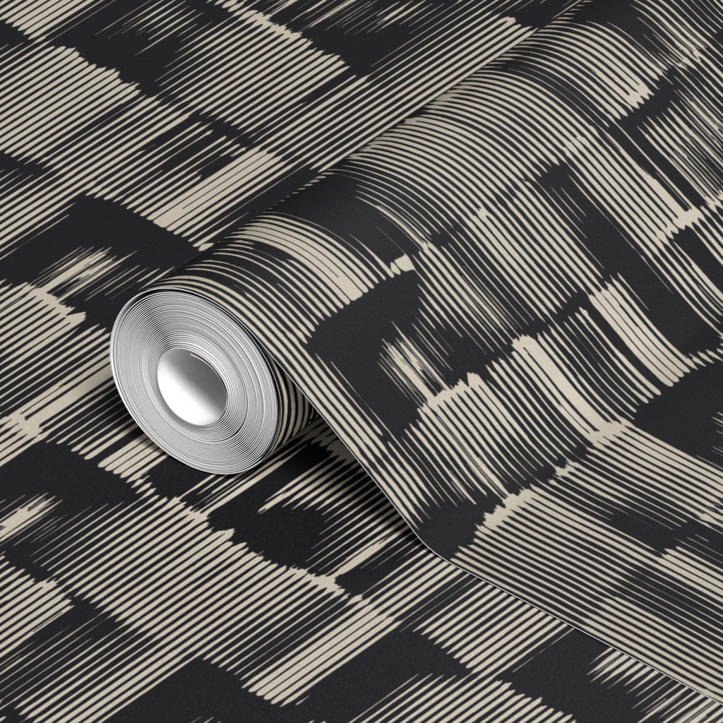 Modern geometric pattern with sleek vertical lines in black, white, and gray tones, creating a contemporary abstract design with a striking industrial aesthetic.