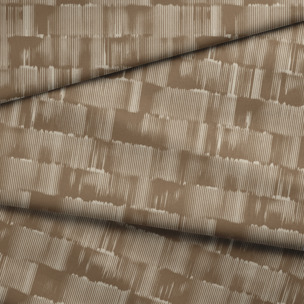Modern geometric pattern with sleek vertical lines in brown and white tones, creating a contemporary abstract design with a striking industrial aesthetic.