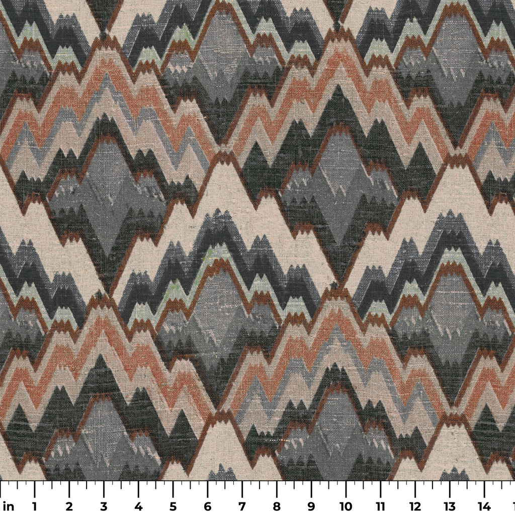 Contemporary geometric zigzag pattern featuring earthy tones of charcoal, beige, and rust, creating a modern tribal look with dynamic chevron motifs perfect for a stylish aesthetic.
