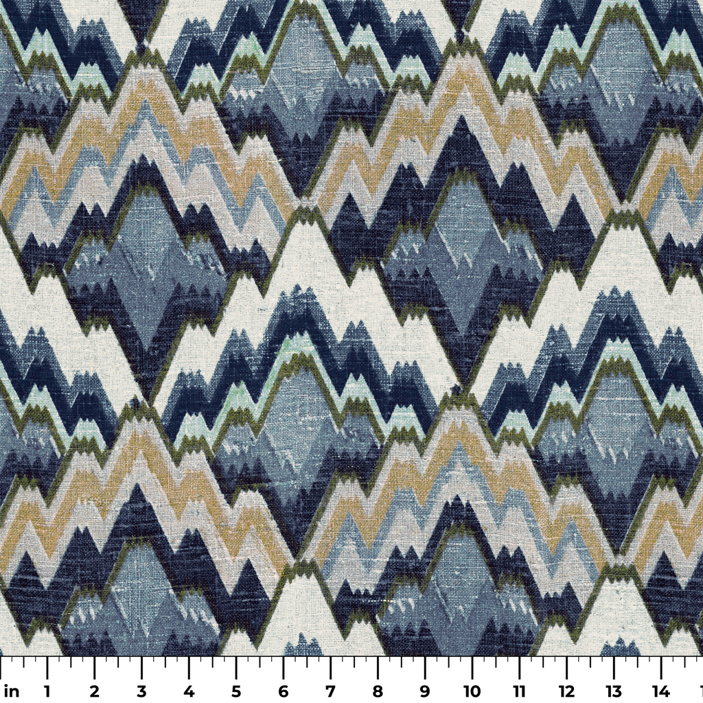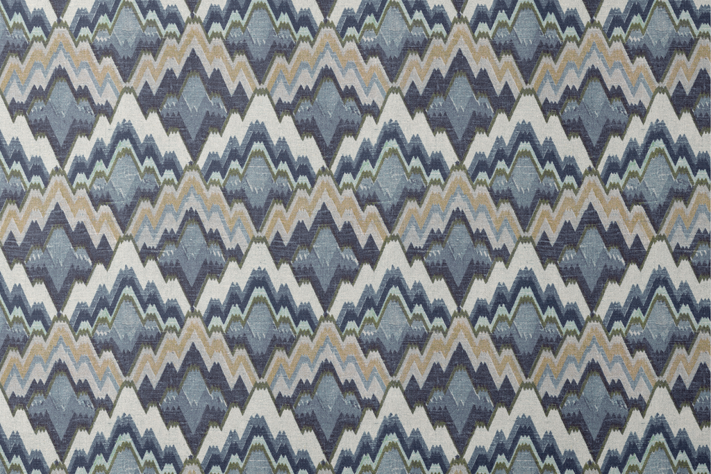 Contemporary geometric zigzag pattern featuring tones of blue, beige, and cream, creating a modern tribal look with dynamic chevron motifs perfect for a stylish aesthetic.