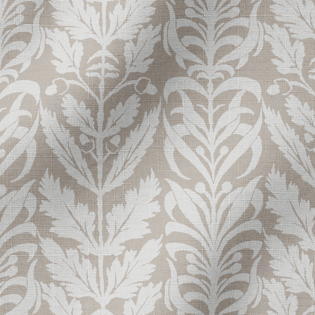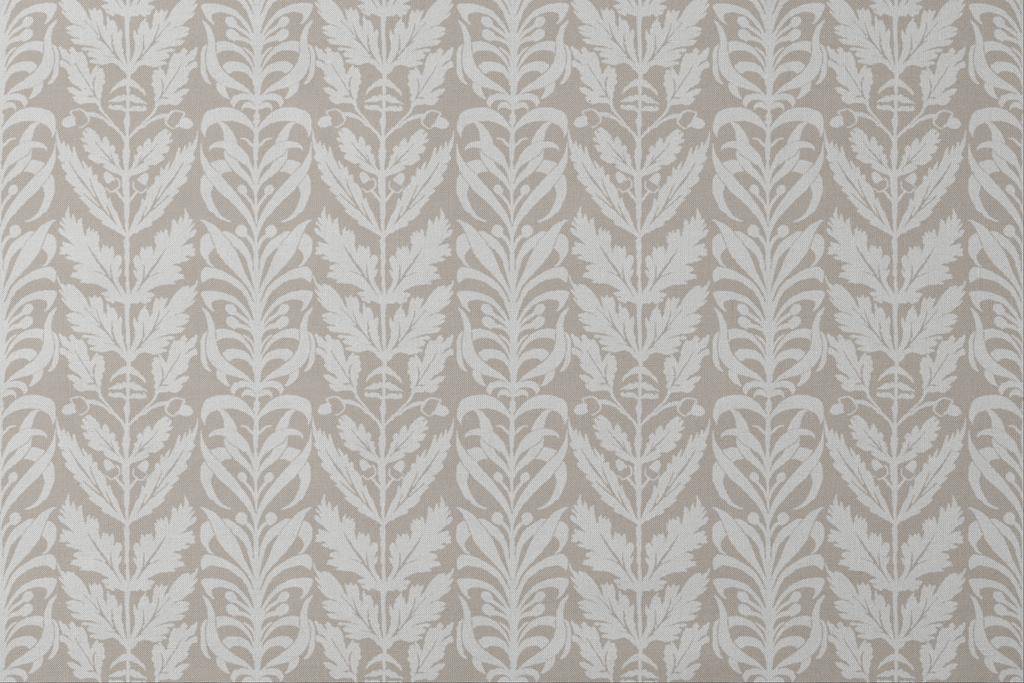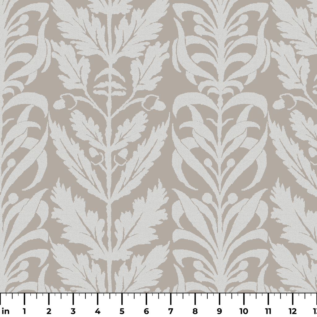 Elegant damask pattern in light gray tones featuring symmetrical leaf motifs with a rich, heritage-inspired aesthetic.