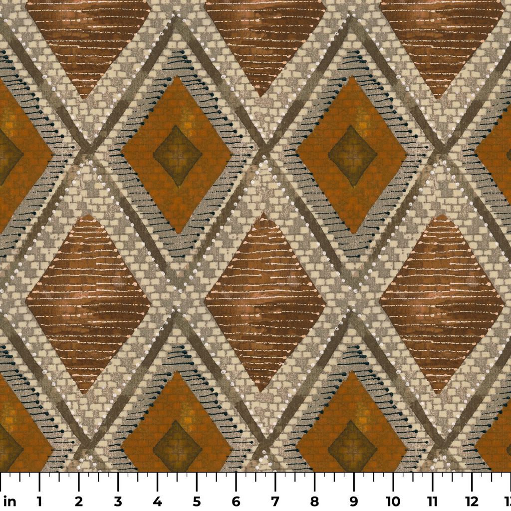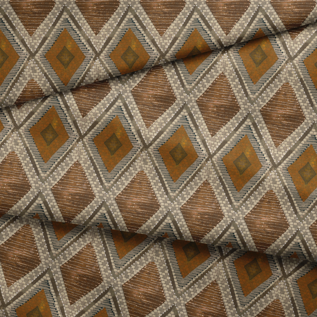 Modern geometric diamond pattern in shades of brown and beige. This contemporary design features overlapping lines creating a stylish tribal-inspired arrangement for any space.