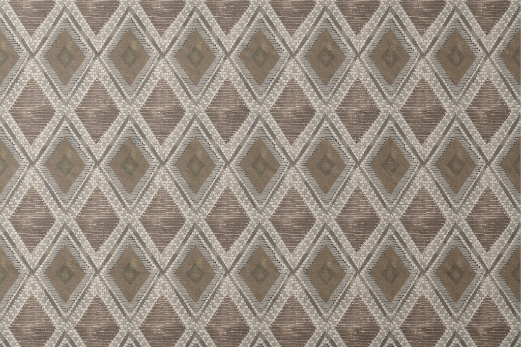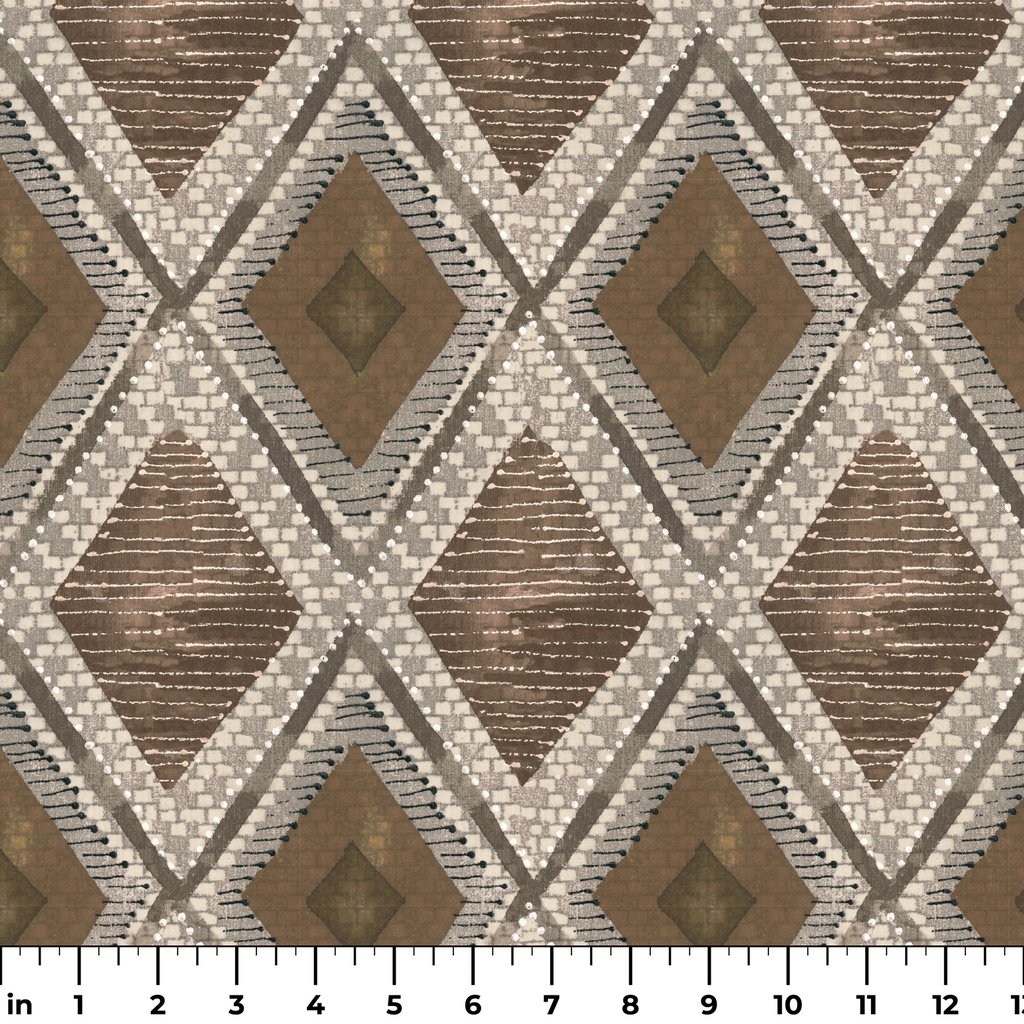 Modern geometric diamond pattern in shades of taupe and cream. This contemporary design features overlapping lines creating a stylish tribal-inspired arrangement for any space.