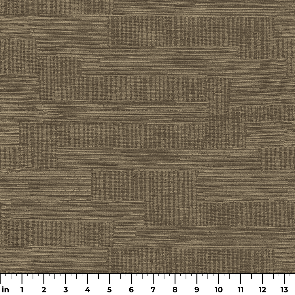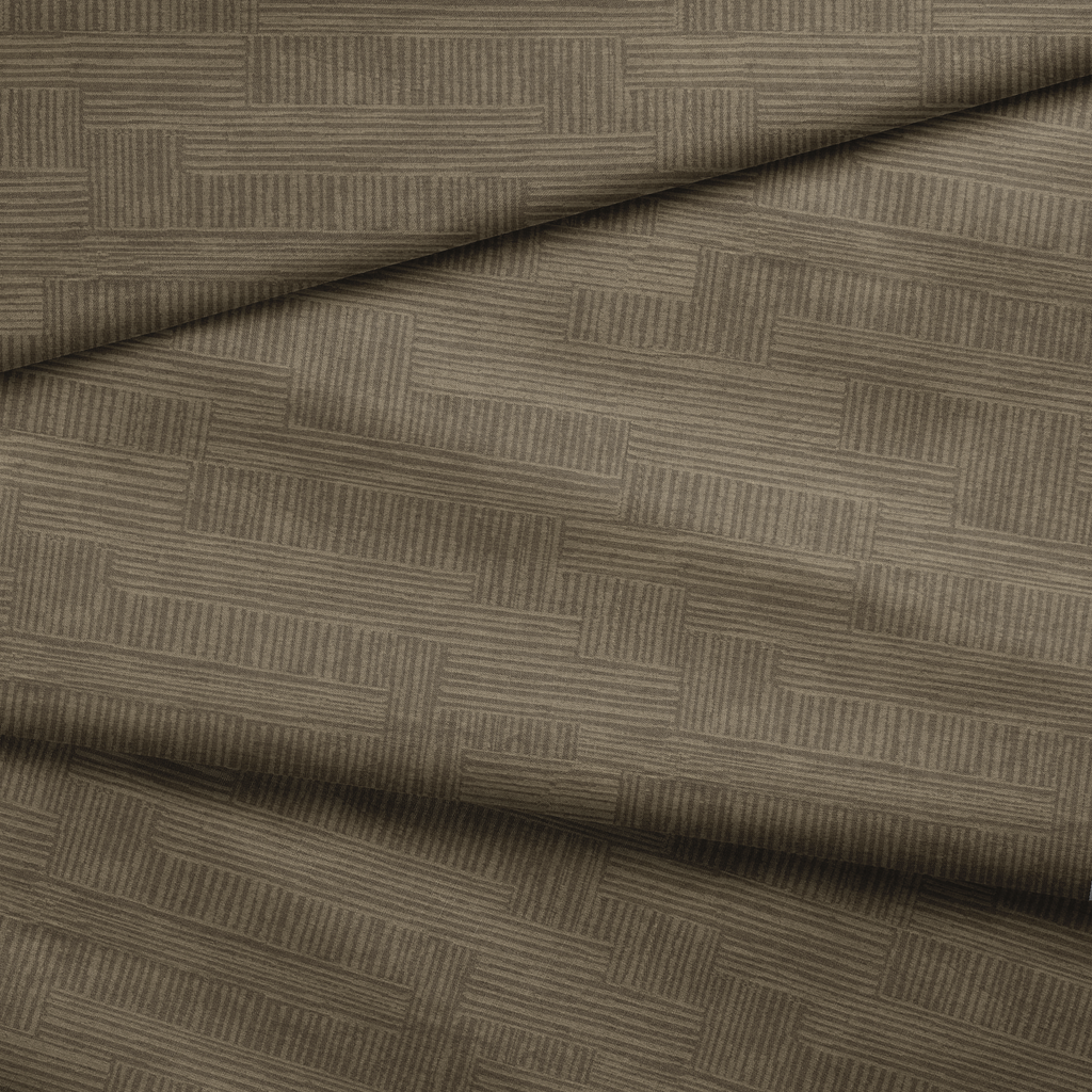 Contemporary geometric pattern in muted brown with linear textured stripes arranged in a modern modular layout, perfect for any space.
