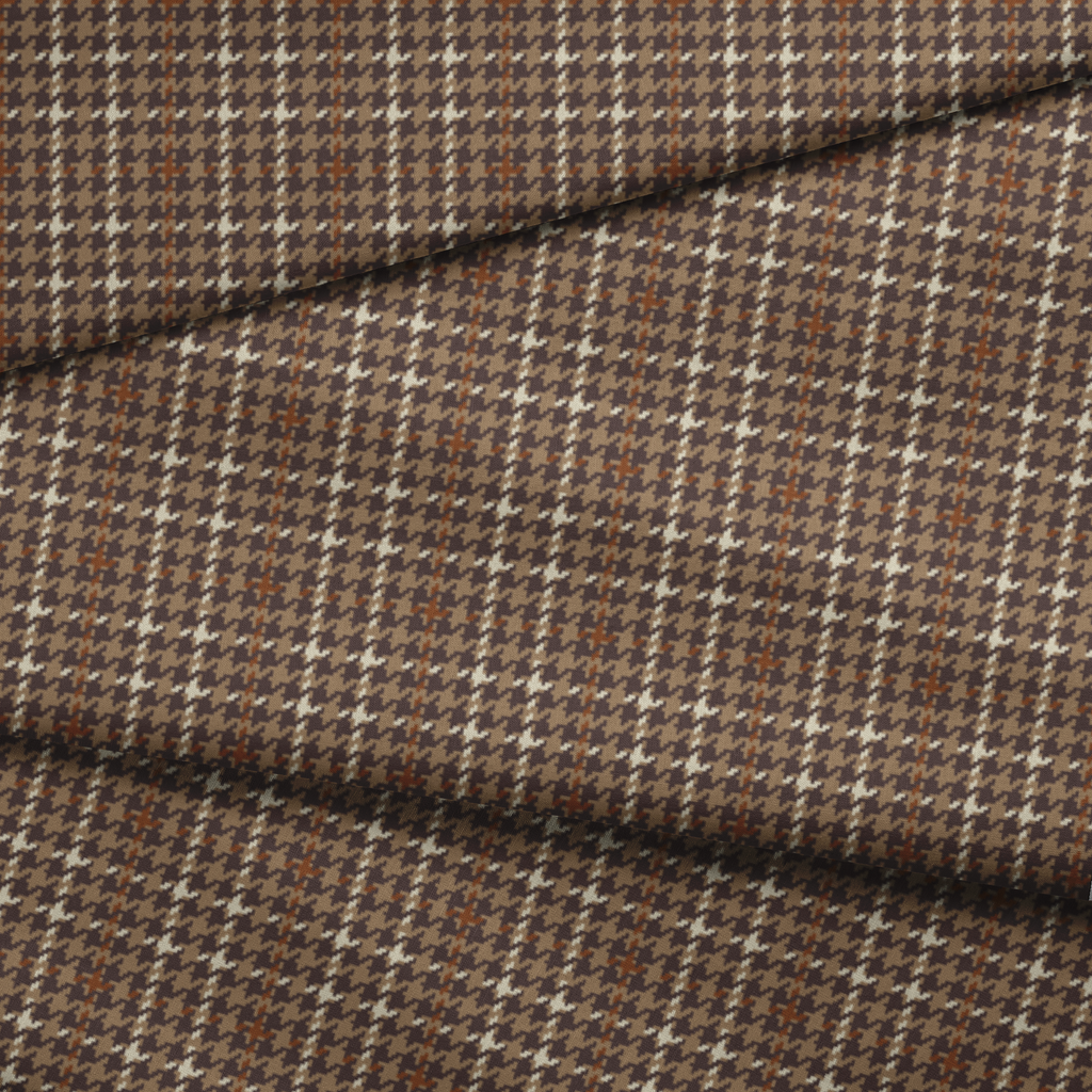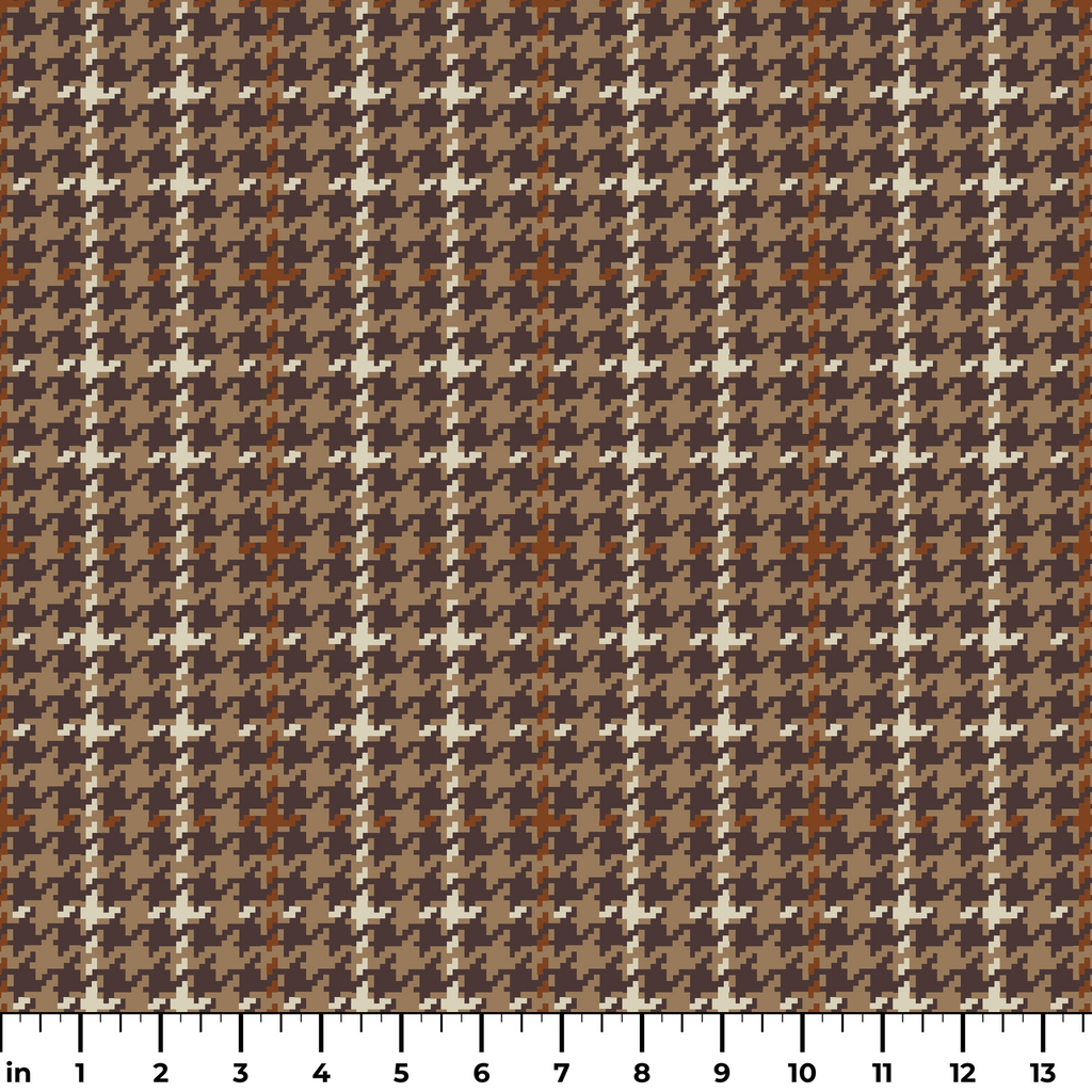 This design previews a classic houndstooth pattern featuring various shades of brown checks on top of a subtle plaid background giving a perfect vintage but timeless aethetic.