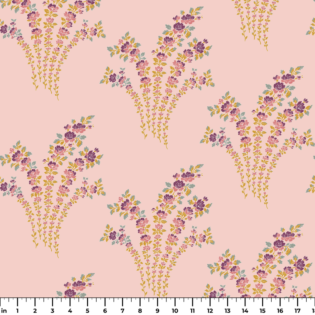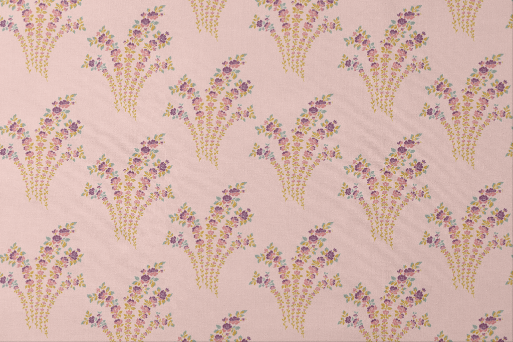 Cascading pink and purple blossoms with golden foliage form an enchanting vintage floral design. This pattern captures a sense of timeless elegance and natural beauty, rooted in a romantic, heritage-inspired style.