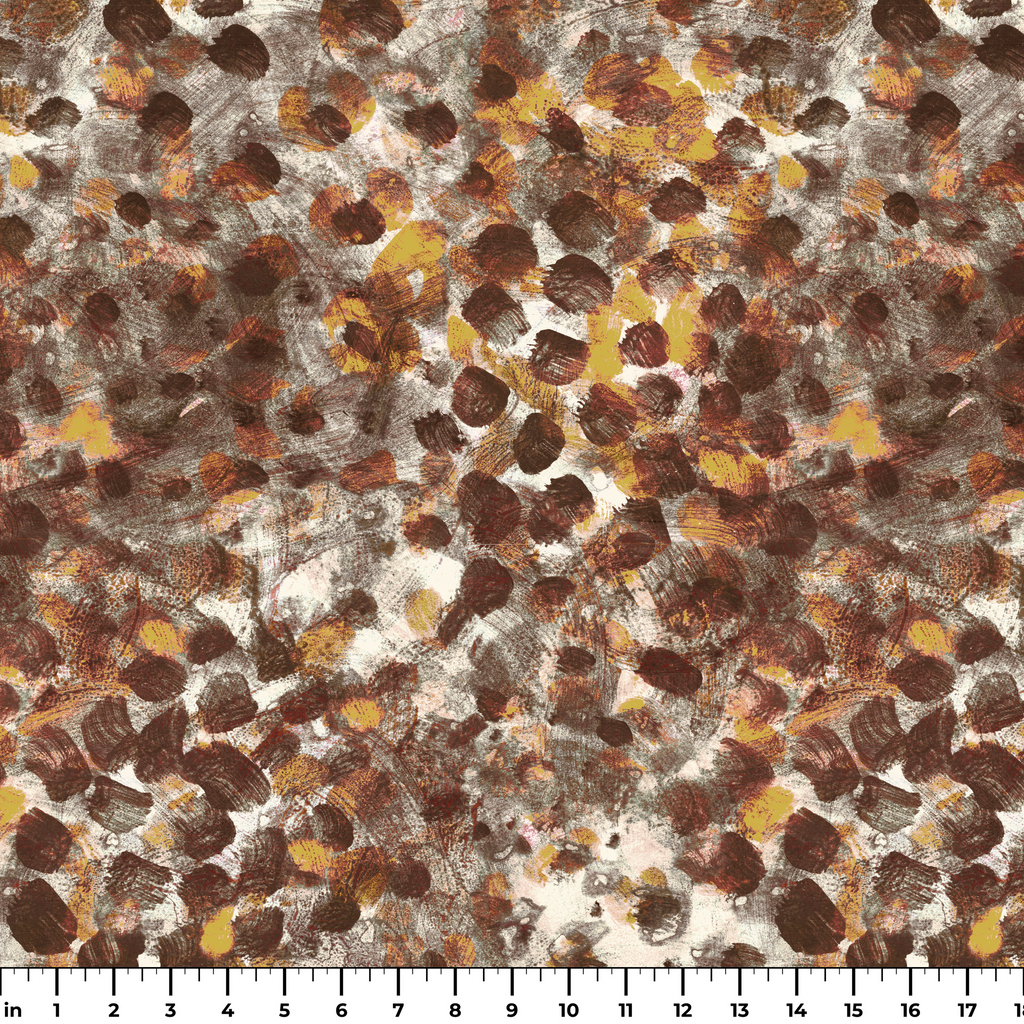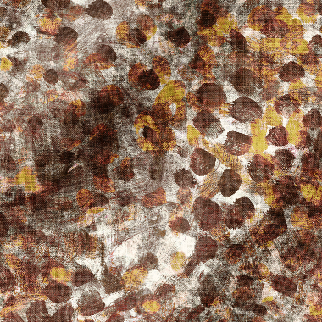 Rich, earthy abstract pattern featuring organic brown shapes against a warm golden background. Perfect for rustic home decor with its textured, weathered appearance and natural color palette.