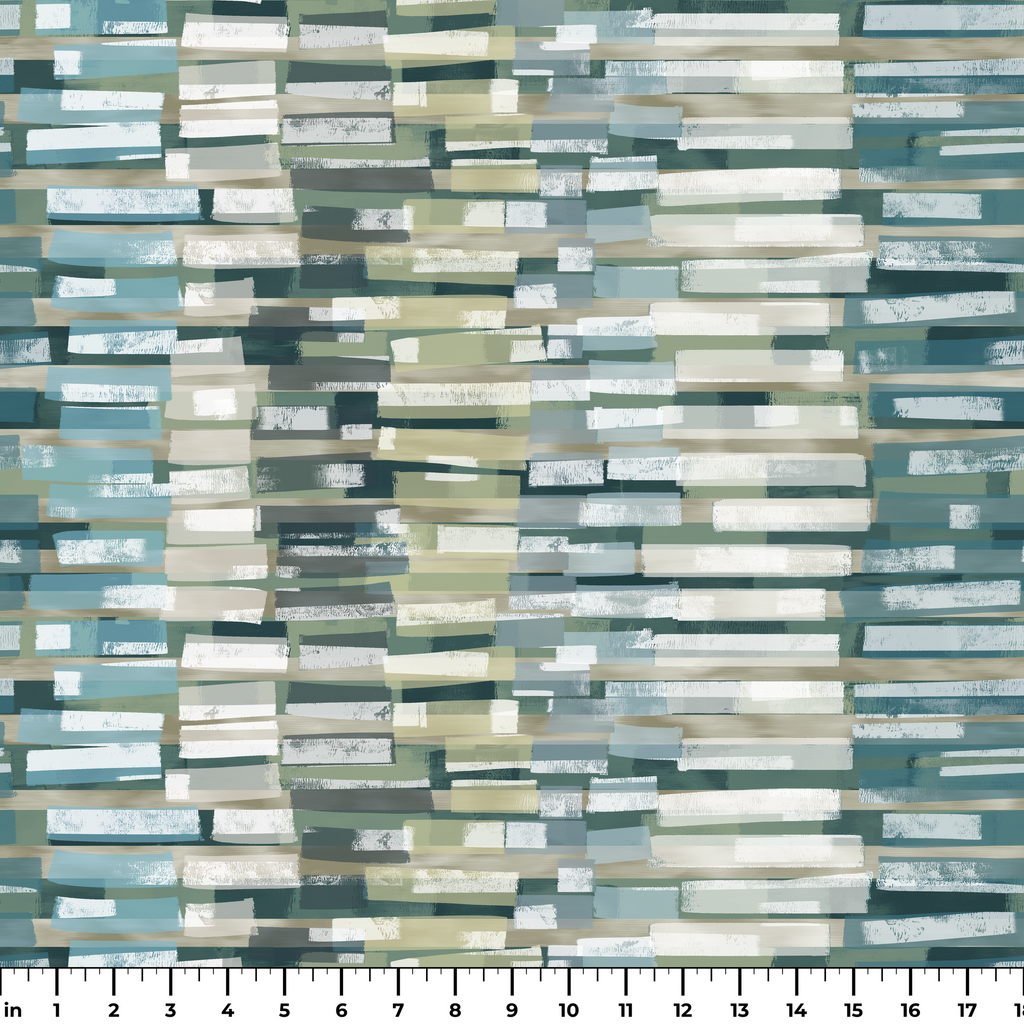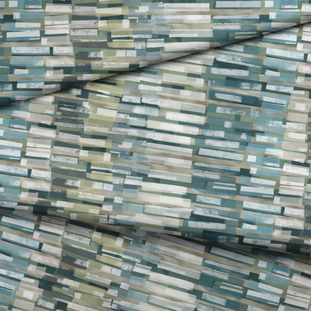 Modern abstract design in soothing blue, green, and cream tones with geometric rectangular shapes, perfect for contemporary interiors.