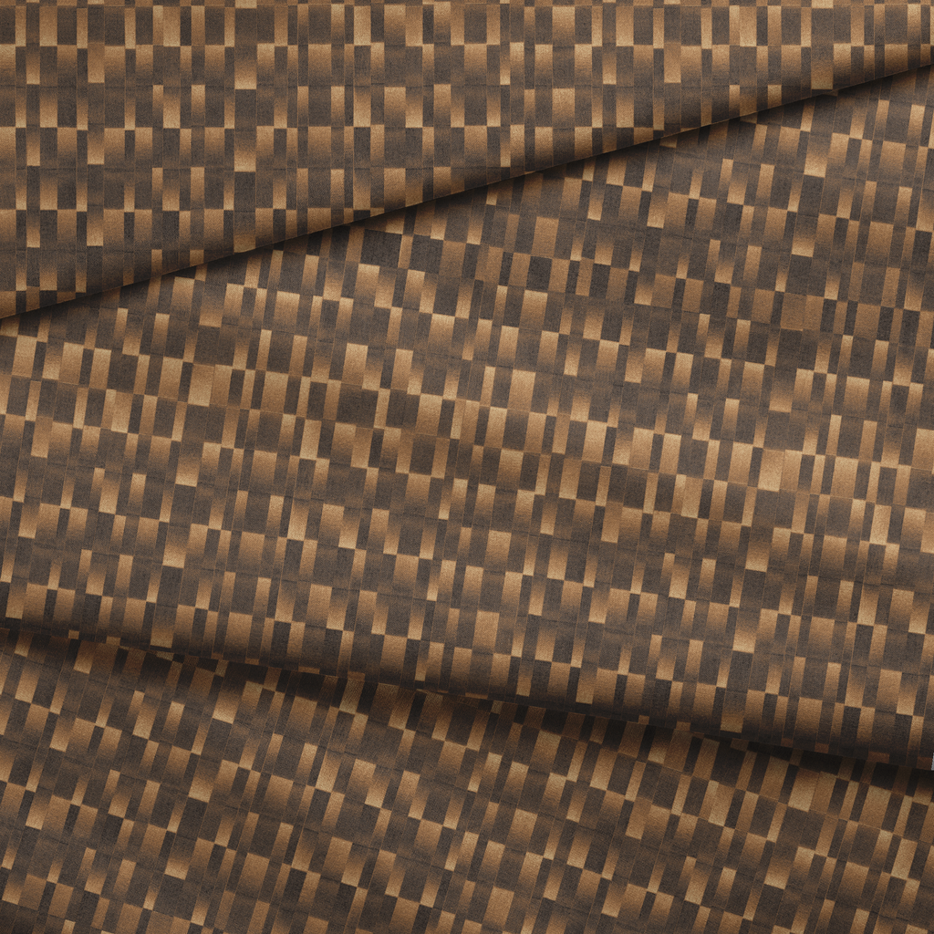 Warm woven geometric pattern in rich brown tones creates a sophisticated basketweave texture that adds natural depth to contemporary home decor.