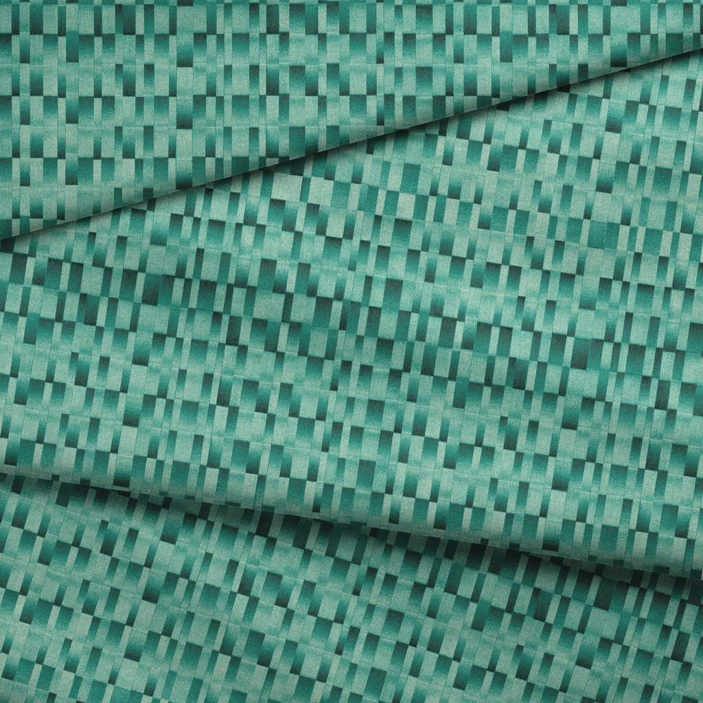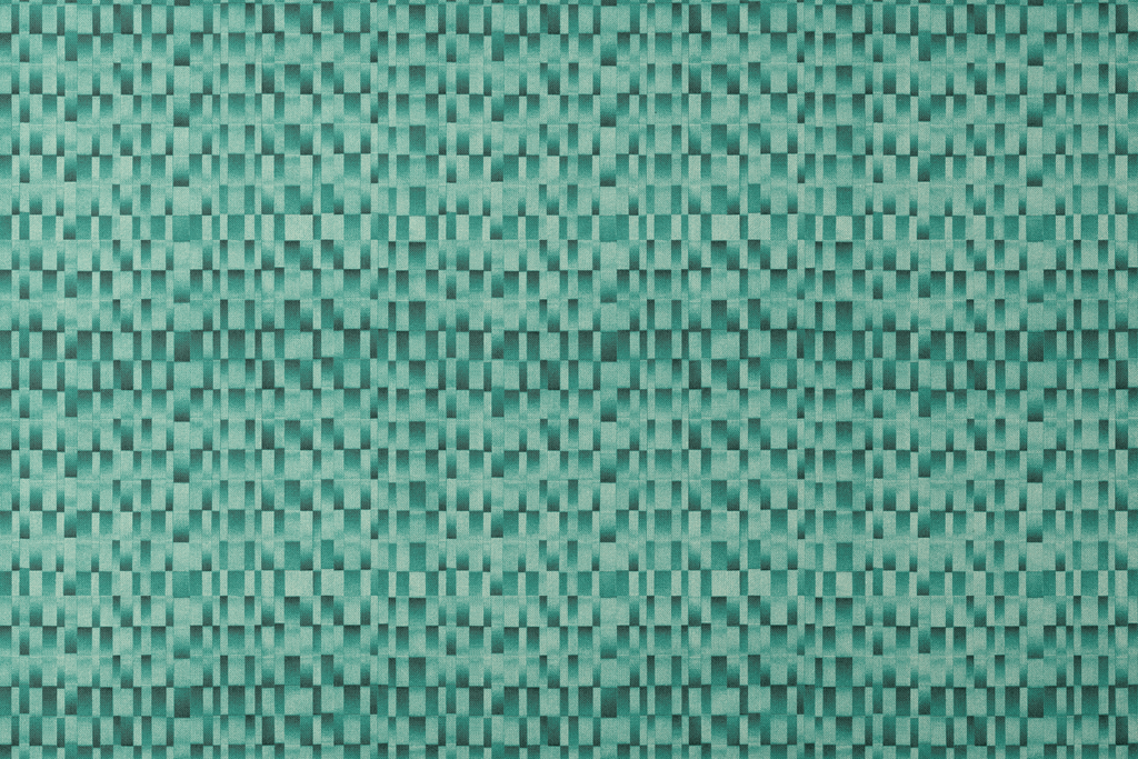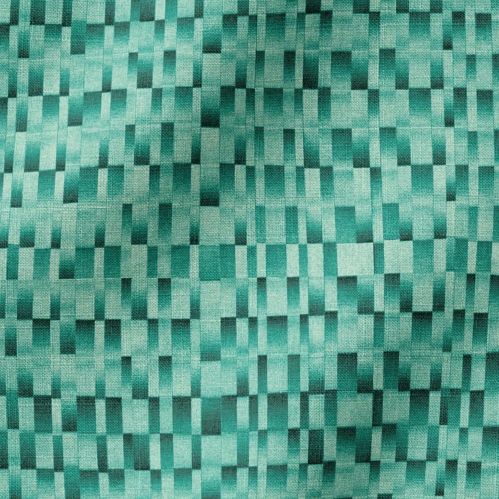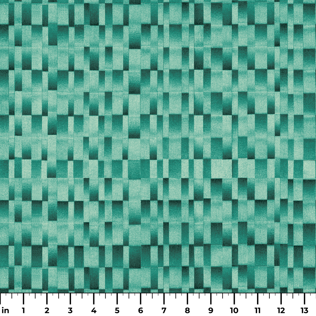 Sophisticated teal geometric pattern featuring various shades of aqua and turquoise in a woven basketweave textured look, perfect for modern home decor or stylish upholstery projects.