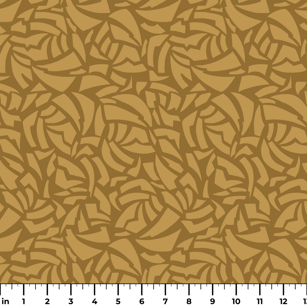 This elegant abstract pattern features flowing organic shapes in soft gold and burnt yellow tones, creating a sophisticated, minimalist aesthetic.