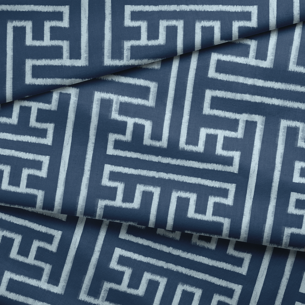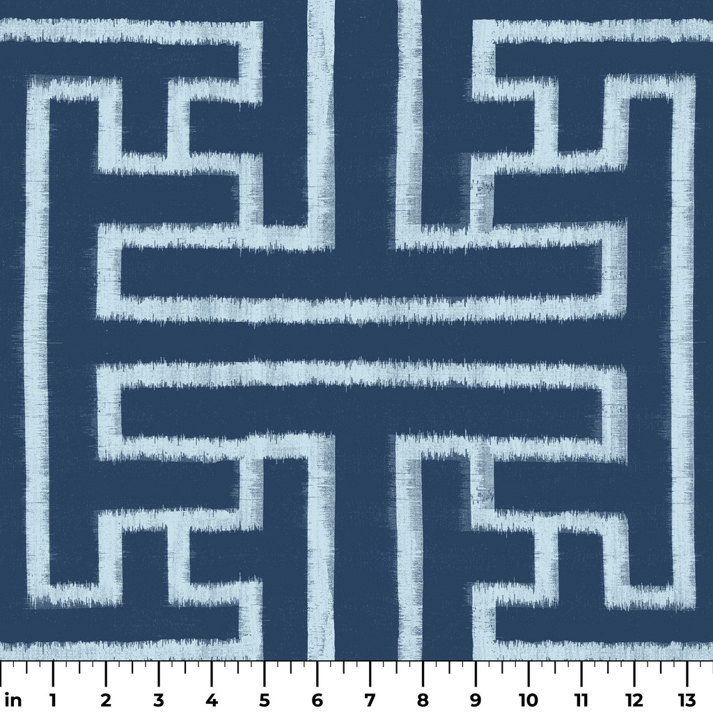 This elegant geometric pattern features a deep blue Greek key design with a textured, distressed finish, perfect for adding a sophisticated touch to any space.
