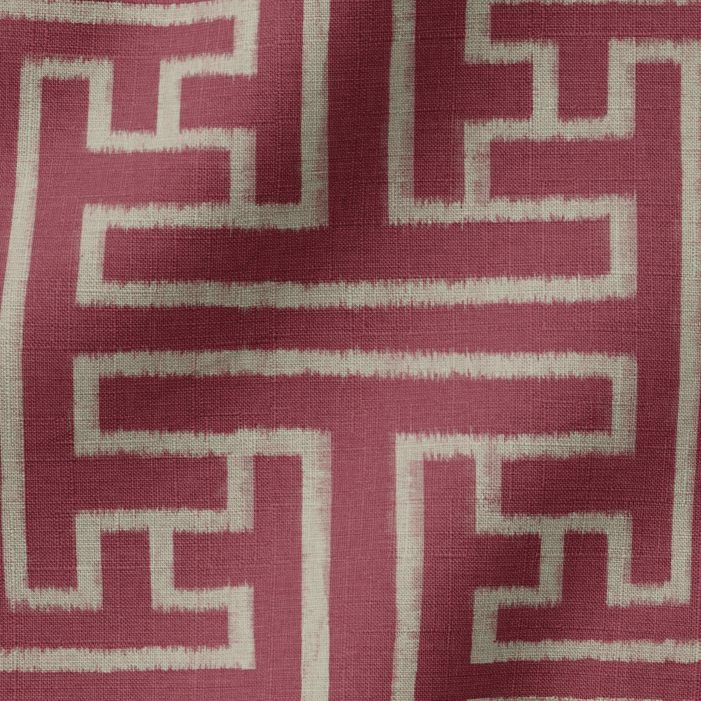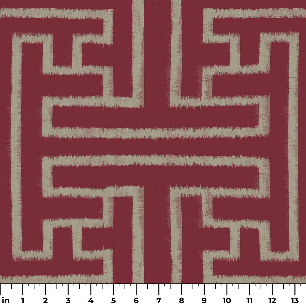 This elegant geometric pattern features a deep red Greek key design with a textured, distressed finish, perfect for adding a sophisticated touch to any space.