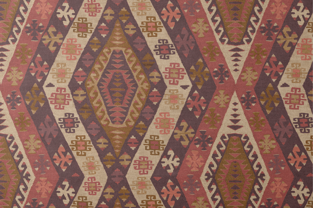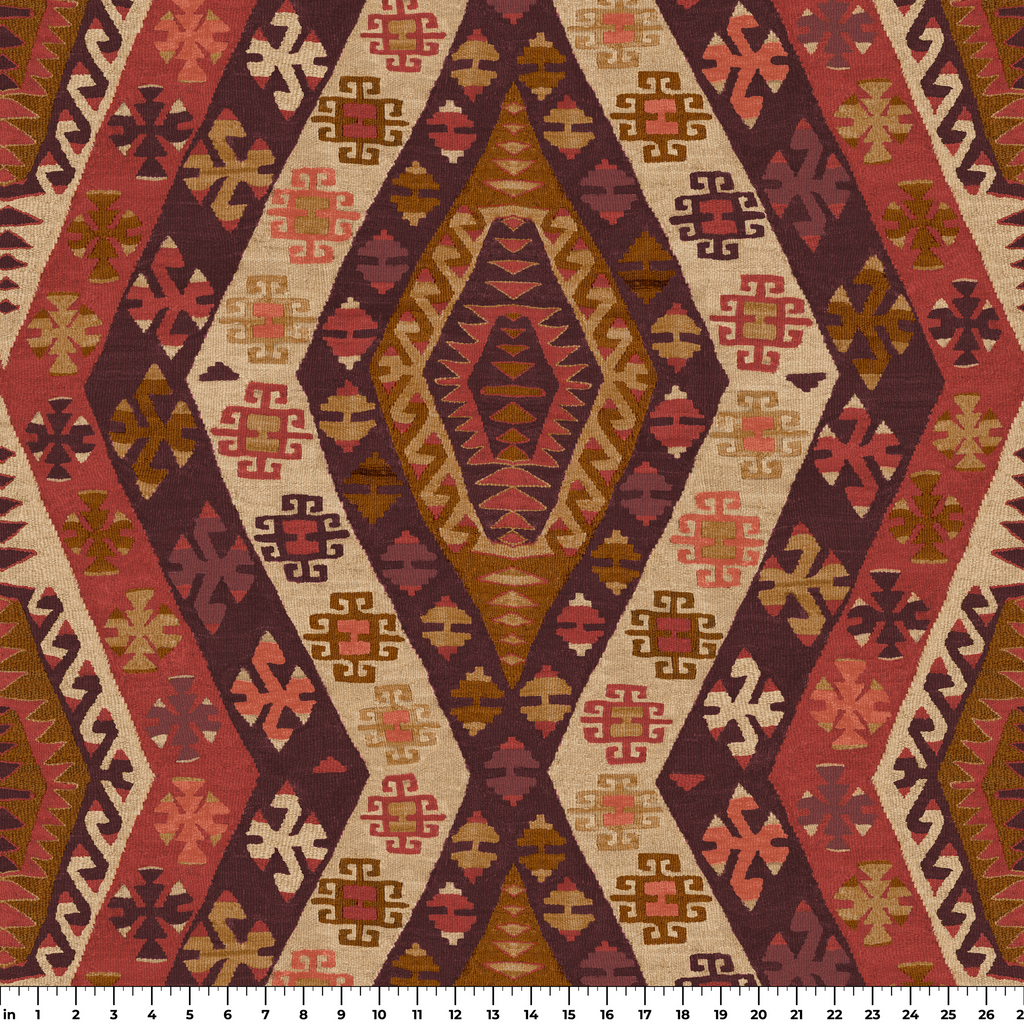 Rich traditional kilim pattern featuring geometric medallions in burgundy, rust, and cream tones, showcasing authentic tribal motifs with a vintage Southwestern heritage design.