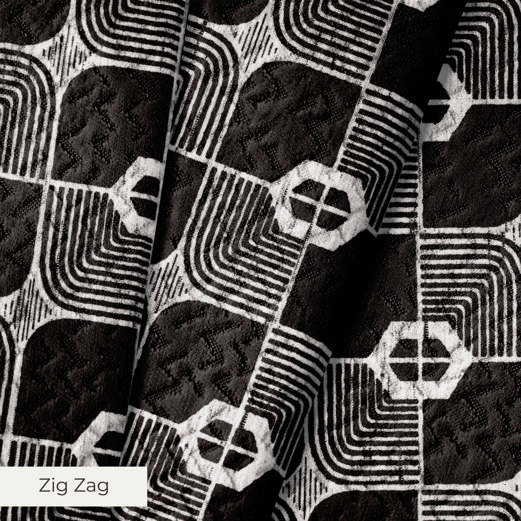 A sophisticated jacquard featuring a vertical geometric zigzag pattern with subtle sheen. Zig Zag's textured surface adds depth and dimension, offering commercial-grade durability and elegance for modern interiors.