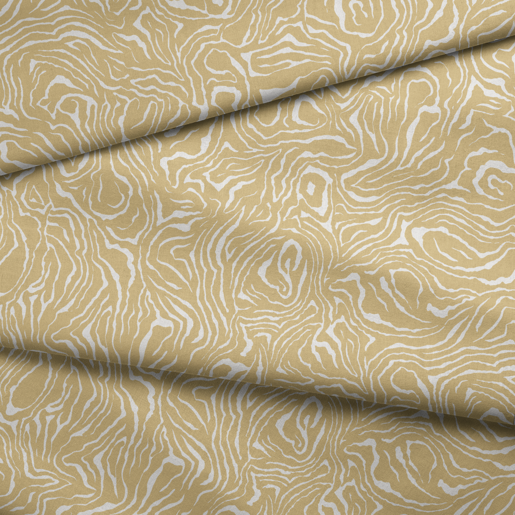 Elegant abstract swirls create a sophisticated pattern in soft gold tones. This flowing design adds subtle texture and warmth to any space.
