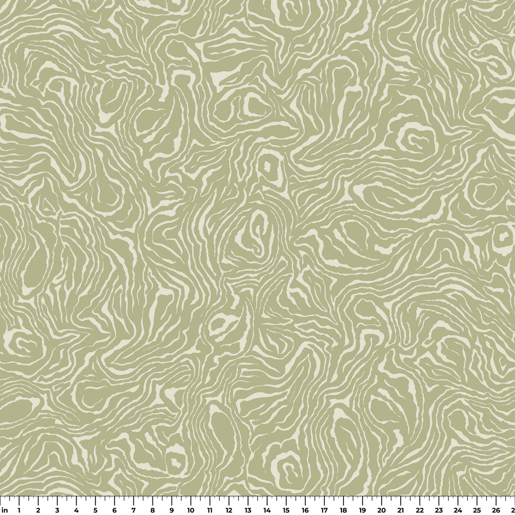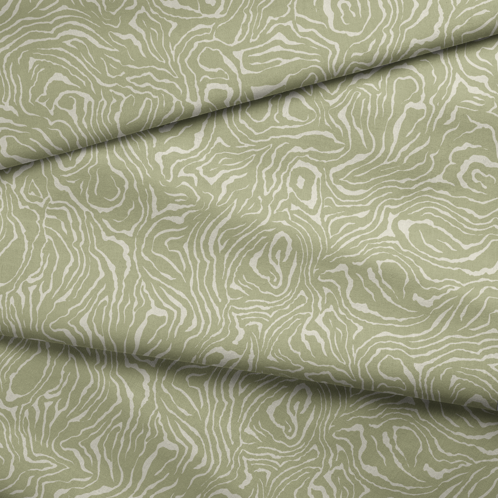 Elegant abstract swirls create a sophisticated pattern in soft green tones. This flowing design adds subtle texture and warmth to any space.