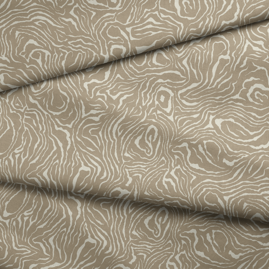 Elegant abstract swirls create a sophisticated pattern in soft brown tones. This flowing design adds subtle texture and warmth to any space.
