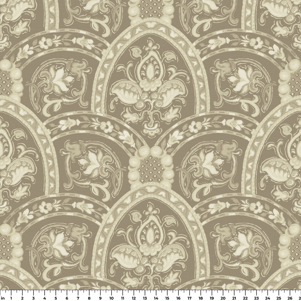 Elegant traditional damask in beige and cream tones creates a luxurious heritage pattern with intricate floral medallions and ornate scrollwork, perfect for a sophisticated look.