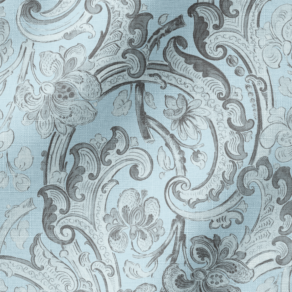 This elegant paisley pattern features swirling floral motifs in varying shades against a light blue background, perfect for a sophisticated look for any space.