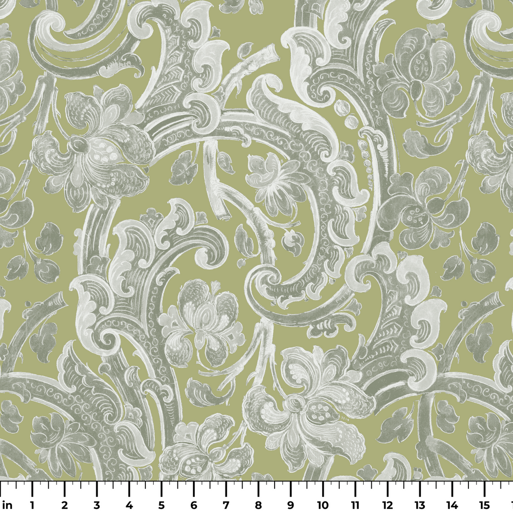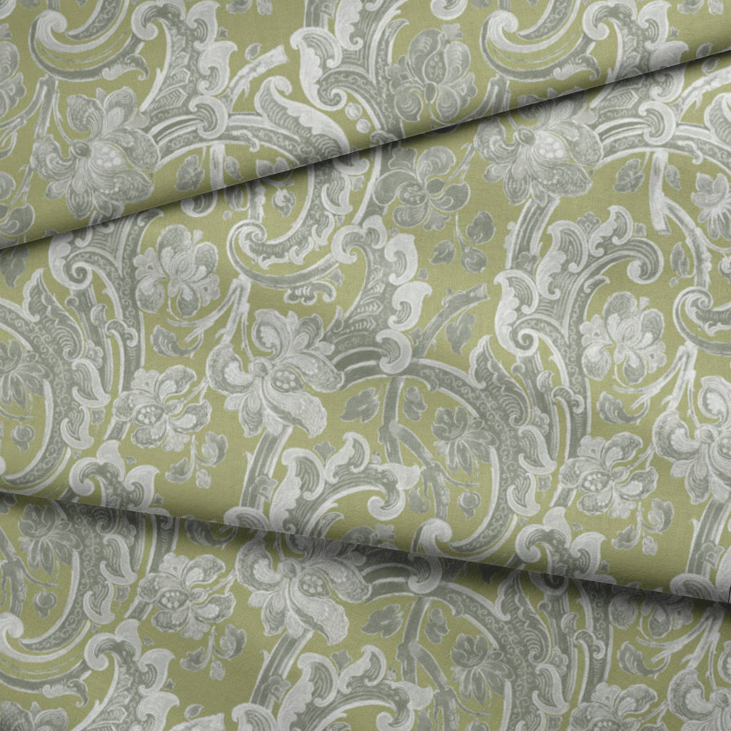 This elegant paisley pattern features swirling floral motifs in varying shades against a light green background, perfect for a sophisticated look for any space.
