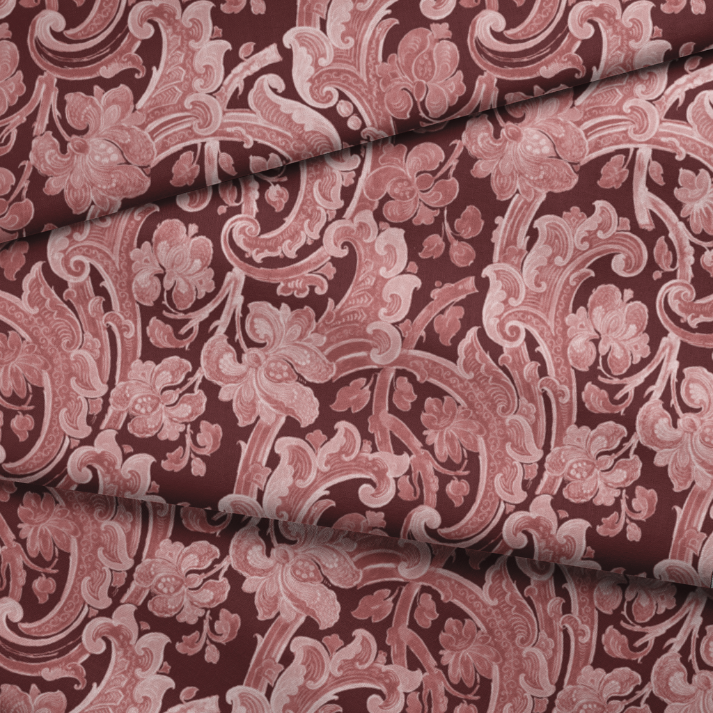This elegant paisley pattern features swirling floral motifs in varying shades against a rich red background, perfect for a sophisticated look for any space.