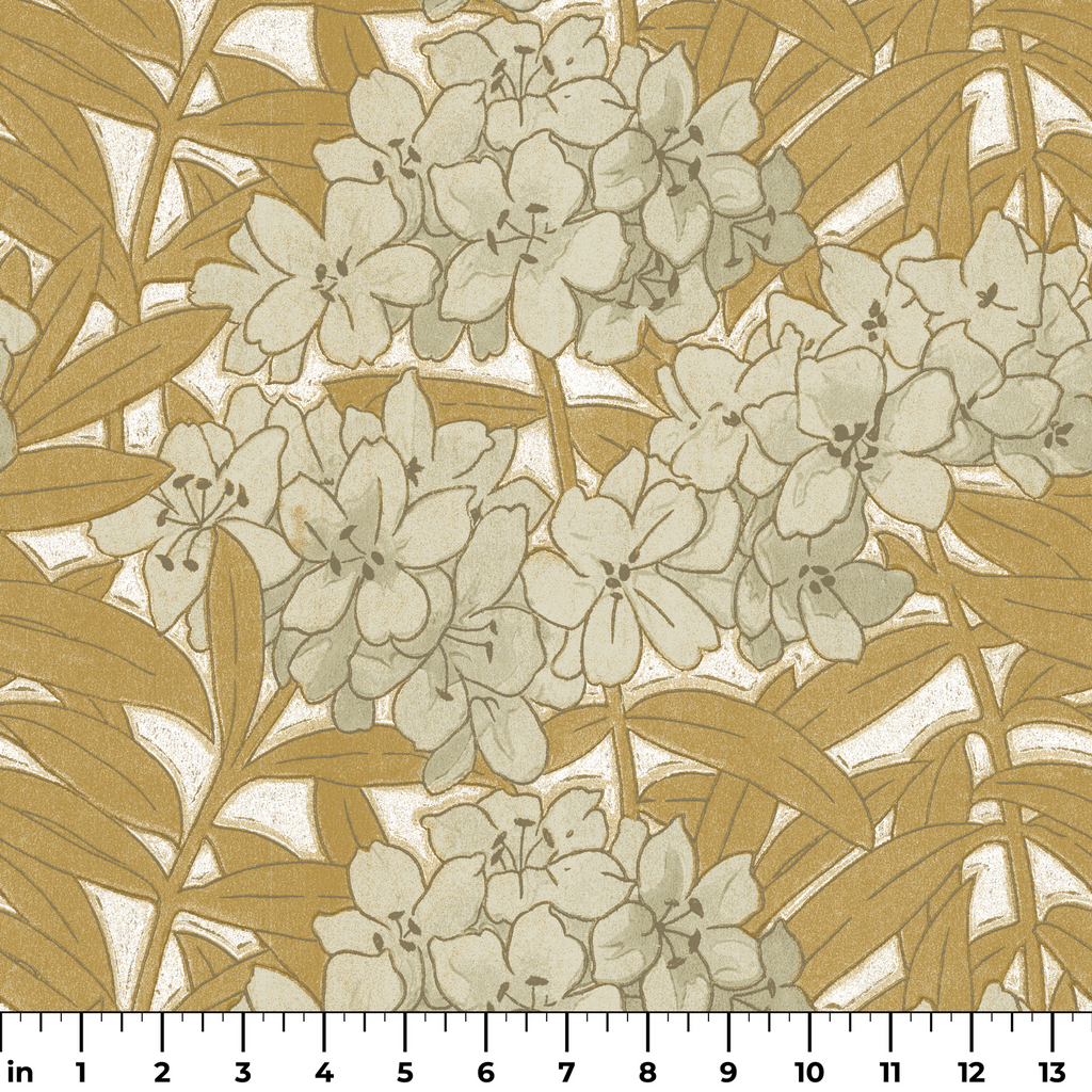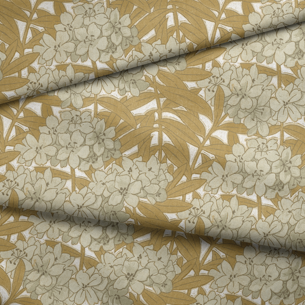 Elegant vintage floral illustration featuring delicate beige blooms against a cream background, with graceful brown foliage creating a timeless botanical pattern perfect for any home.